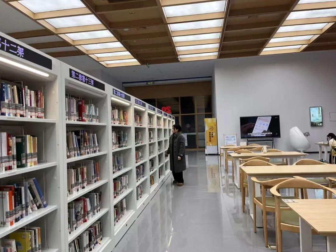 步入阅览室,节日氛围与文化气息交织相融。只见红色的新春装饰点缀其间,一侧的长桌上,摆放着年糖年饼和热气腾腾的茶水。书架前,读者或驻足挑选,或凝神阅读;阅读区内,有读者伏案疾书,沉浸于知识的海洋。
