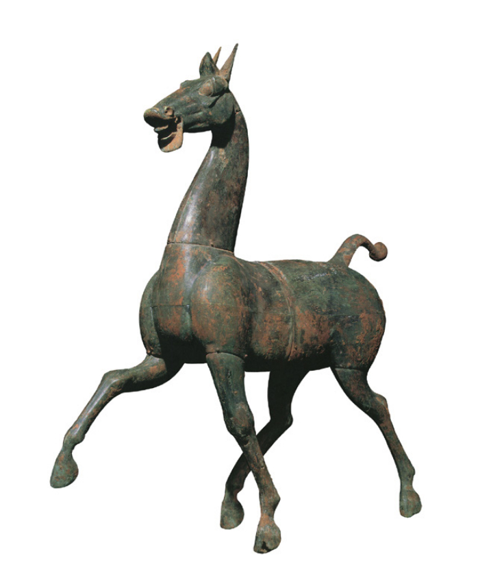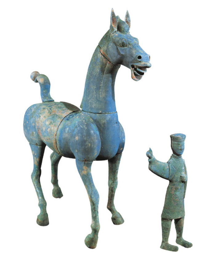 每天一件青铜器马年新年快乐 德国科隆亚洲艺术馆藏汉代的青铜马, 与图2绵阳何家山出土的汉代铜人马俑类似, 这件也是有搭配的人俑的. 高度未查到披露, 但一般这类俑高度都在1米以上. 图3是之前介绍过的日本美秀藏品, 图4明尼阿波利斯美术馆藏品
