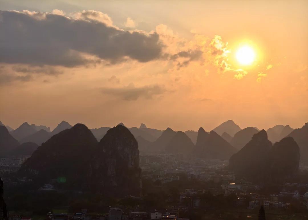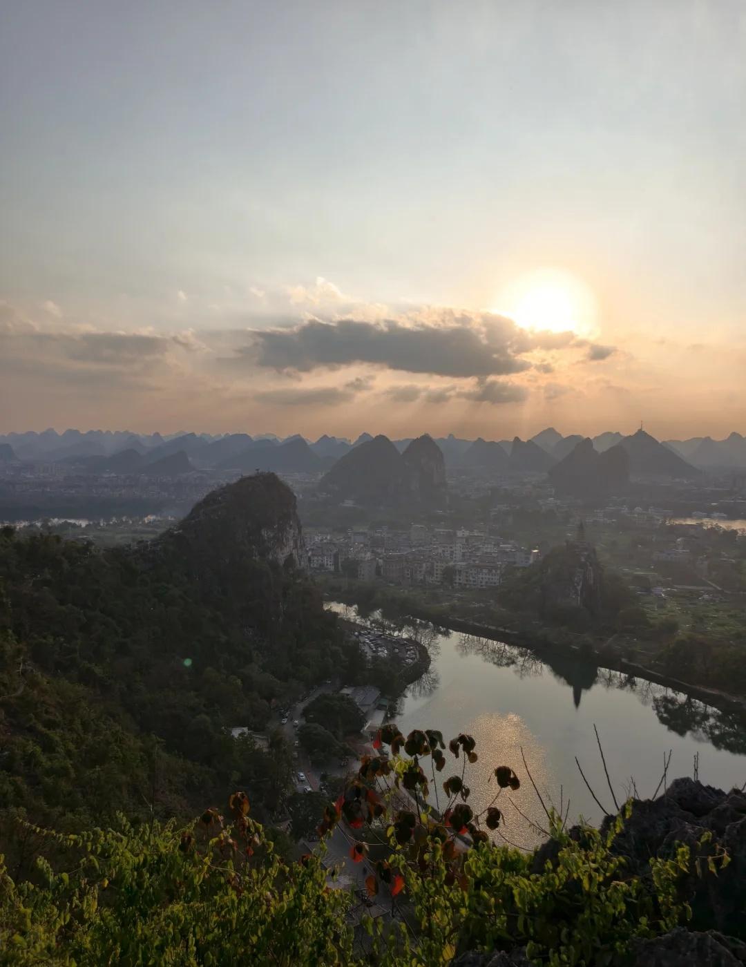 桂林穿山公园 穿北亭路线 从穿山景区北门步行进入,右手边是湖心岛,左手边走一段就是上山的路(如图P1,2),爬一段能看到穿北亭和明月峰的分岔路,左拐继续爬(P3),爬到P4分岔路时没有标志,左转继续爬,就到了穿北亭(P5),另附两张亭上看到的风景,非常震撼,值得一爬,大概半小时就到了桂林 穿山公园