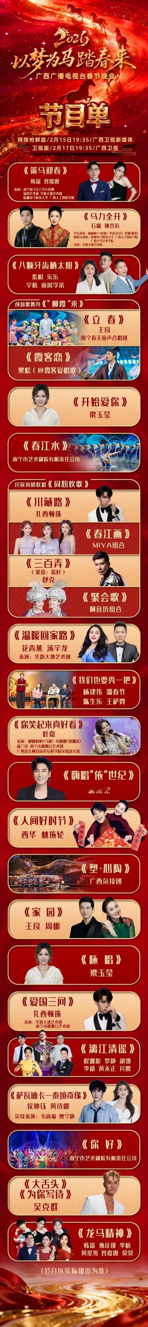大年初一春晚及特别节目:2026宁夏少儿春晚 宁夏卫视 7:42新朝阳工程中老年春节特别节目 中国教育1 9:002026央视少儿春晚 央视综合频道 13:50首播2026年海南省琼剧春晚/音乐心旅程春晚大联欢 海南卫视 10:30/14:302026年和美乡村新春会 央视综合频道 15:282026年上海市各界人士春节团拜会 东方卫视 12:002026成渝少儿春节联欢晚会 重庆卫视 12:30CMG第四届中国电视剧年度盛典 央视电视剧频道 17:53首播2026北京卫视春晚/2026江苏卫视ai荔枝春晚/2026浙江卫视春晚/2026丝路春晚(陕西卫视首播)/2026天津卫视相声春晚/2026福建春晚/2026湖北卫视春晚/湘戏正当潮2026湖南戏曲春晚(山东卫视首播)/2026东方卫视春晚(19:31)2026广西春晚(19:35)/2026内蒙古春晚(19:40)/2026宁夏春晚/2026四川农民工春晚(19:35)/2026海南省春晚(19:32)2026新春喜剧之夜 央视综艺频道 19:30首播2026四海同春全球华侨华人春节大联欢 央视中文国际频道 19:31 中华好有戏-2026春节戏曲晚会 河北卫视 20:002026云南省春晚 云南卫视 20:002026百花迎春 湖南卫视 20:10首播2026安徽农民春晚 安徽卫视 21:35诗意中国2026春节诗歌晚会 中国教育1 19:302026藏历春晚 西藏卫视 20:002026乐龄春晚 中国教育1 21:302026新春走基层军营过大年(1) 央视军事频道 20:43