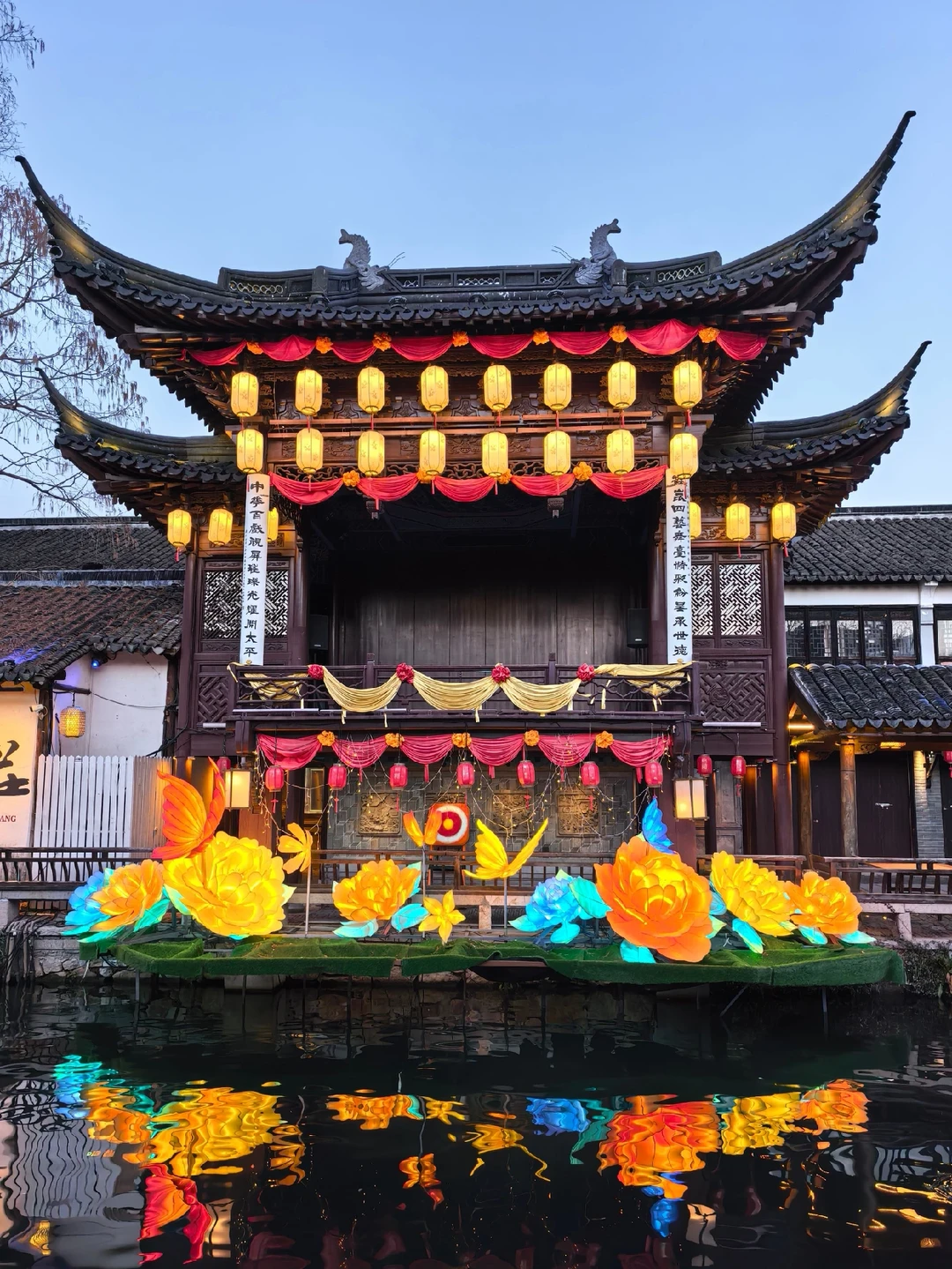 3️⃣18:30后乘摇橹船,穿行水巷花灯倒影中,氛围感拉满。