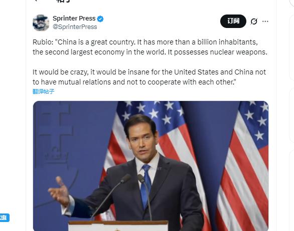 就在刚刚, 鲁比奥公开拥抱中国,当众做出一个罕见举动。 向来持反华立场的美国国务卿鲁比奥今天(美国时间2月16日)在匈牙利访问时罕见公开拥抱了中国,鲁比奥称,“如果美国和中国彼此没有关系,没有互动,这简直太荒谬了。” 值得一提的是,这是鲁比奥是在被记者问到“为什么美国不要求匈牙利减少与与中国的合作”时做出此番罕见表态的。 毕竟这和他过往的反华立场比起来,简直是判若两人,与其说这是他态度的转变,不如说是一场精准的政治表演,背后全是美国的现实利益算计,半点真心实意都没有。 这位古巴裔的美国国务卿,从踏入全美政治舞台开始,就把反华当成了自己的“晋升密码”,2020年,他因为在涉疆、涉港问题上的恶劣表现,直接被中国实施制裁,这可是实打实的反华实锤。 之后的几年里,他更是变本加厉,在各种场合抹黑中国,推动多项涉华负面立法,呼吁关闭所有在美孔子学院,甚至在2026年2月初访问拉美国家期间,还在公开场合指责中国与拉美国家的正常经贸往来,宣称要“防范中国影响力”。 可短短半个多月时间,他就在匈牙利改口,这种180度大转弯,说不是背后有盘算谁信啊?说白了,鲁比奥这变脸速度,比翻书还快,前阵子还在拉美唱反华高调,转头就对着中国示好,核心就一个——美国的现实利益不允许他再硬气下去了。 而匈牙利作为欧盟国家,却一直是美西方阵营里的“异类”,人家压根不买美国“反华”的账,反而一门心思跟中国搞务实合作,毕竟合作能拿到实实在在的好处,谁也不会跟利益过不去。 就说中匈共建的匈塞铁路,这可是“一带一路”里的标志性项目,匈牙利段在建的时候,中匈工程师一起上阵,哪怕要符合欧盟的严格标准,还要兼顾环保,甚至在候鸟繁殖期暂停施工、帮助保护动物迁徙,也照样稳步推进,建成后从布达佩斯到贝尔格莱德的车程能从8小时缩短到3小时,直接让匈牙利变成中东欧的交通枢纽,这种实打实的便利和发展机遇,匈牙利怎么可能因为美国的几句施压就放弃? 鲁比奥心里跟明镜似的,他要是在匈牙利还敢扯“反华”的淡,逼着匈牙利疏远中国,大概率会被当场打脸,不仅丢了美国的面子,还会彻底把匈牙利推得更远,反而不利于美国在欧洲的布局。 美国之前多次要求欧盟国家减少和中国的合作,可没一个国家真的照做,毕竟谁也不想放弃中国这个庞大的市场和靠谱的合作伙伴,鲁比奥这次的表态,说白了就是给匈牙利台阶下,也是给美国自己找退路,嘴上说着“中美不能没有互动”,暗地里其实是承认了美国没法再强迫盟友反华的现实,毕竟再硬来,盟友体系都可能散架。 而比盟友离心更让美国头疼的,是自身的经济烂摊子,这才是鲁比奥突然“变脸”的最核心原因,毕竟在绝对的利益面前,所谓的反华立场不过是可以随时丢弃的遮羞布。 就拿中国美国商会2026年发布的商务环境调查报告来说,里面明明白白写着,在华美资企业展现出极强的经营韧性,有52%的企业预计2025年实现盈利,还有超过一半的企业计划追加在华投资,核心就是看中中国市场的巨大潜力和发展空间。 再回头看匈牙利,人家和中国的合作早就不止于交通物流,新能源领域的合作更是搞得风生水起,这也让鲁比奥的反华表态根本站不住脚。 中企在匈牙利投资建设的蒂萨菲赖德光伏电站,已经顺利投产发电,每年能满足超过2万户家庭的用电需求,还能大幅减少碳排放,当地居民都直言这是造福后代的好事。 比亚迪不仅在布达佩斯启用了欧洲总部,还在匈牙利建设了首家欧洲乘用车工厂,宁德时代、华友钴业等企业也纷纷布局,形成了完整的电动汽车产业集群,既带动了匈牙利的就业,又让当地拿到了实实在在的发展机遇。这种双赢的合作,别说鲁比奥施压没用,就算是美国总统来了,匈牙利也未必会买账。 其实稍微琢磨一下就知道,鲁比奥的这番罕见表态,从头到尾都是一场精心策划的政治表演,和所谓的“对华友好”没有半毛钱关系。 他不是突然良心发现,也不是放弃了反华立场,而是看清了现实——美国现在既管不住盟友,又离不开中国市场,自身经济更是一团糟,根本没有资本再一味强硬反华。 说白了,鲁比奥之前的反华,是为了政治人设和晋升资本;现在的“拥抱中国”,是为了美国的现实利益,是为了给美国企业、农场主找一条退路,更是为了稳住美国在欧洲的布局。 毕竟在美国政坛,没有永远的立场,只有永远的利益。鲁比奥今天能在匈牙利当众说中美不能没有互动,明天要是风向变了,他照样能转头就抹黑中国,这种变脸速度,早就见怪不怪了。 我们没必要因为他这一句敷衍的表态就抱有任何幻想,毕竟从他过往的所作所为来看,他骨子里的反华基因从来没有变过,所谓的“拥抱”,不过是权宜之计罢了。