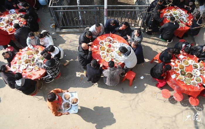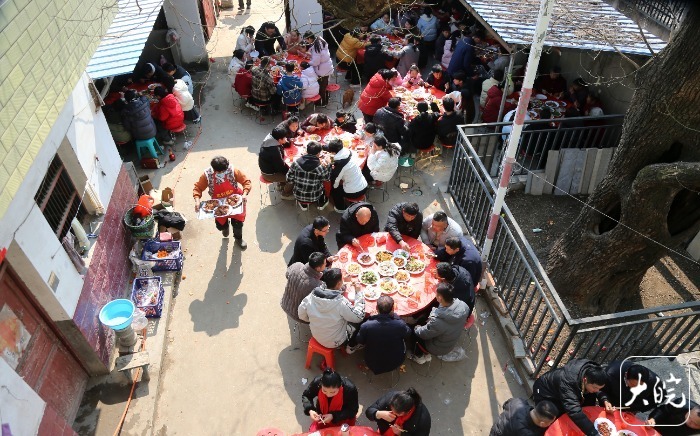 大皖新闻讯2月17日,正月初一。阜阳颍州区农民叶发林家的老槐树下热闹了起来,他们兄妹8家4代100多人从四面八方相聚到此,在这棵有着400多年历史的老槐树下,一起吃了一顿幸福、温馨,且年味十足的团圆饭。