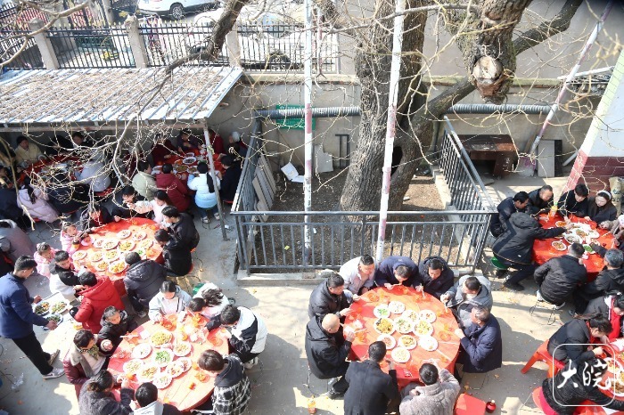 “我二爷叶发林家这棵老槐树有400多年了。小的时候,我们这些晚辈都在这棵老树下玩耍过。如果这个大家庭的人都聚到老槐树下,一起吃个团圆饭,一定特别有意义。”叶振华告诉记者,当他把这个想法跟父亲说后,得到了支持和赞同。于是,在2025年春节,他便从当地找来了大厨,和二爷叶发林商量好后,便在院外架起了灶台,在院内摆起了桌子,8家4代100多人第一次在老槐树下吃了一次“特别有意义的团圆饭”。