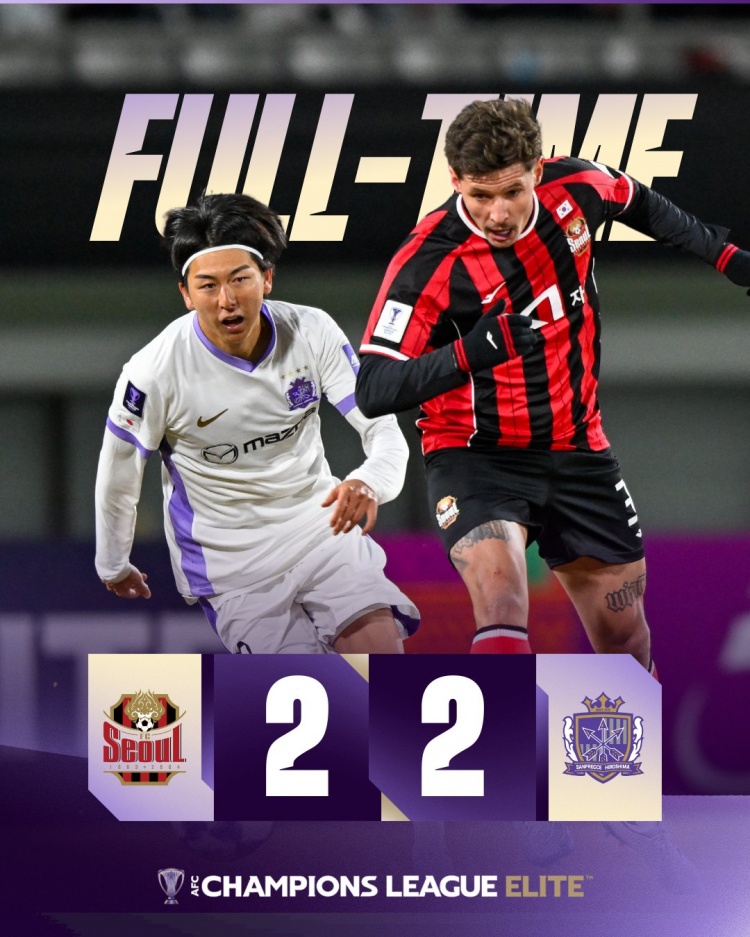 直播吧2月17日讯亚冠精英联赛东亚区第8轮,广岛三箭客场对战韩国球队首尔FC。在先丢两球的情况下,广岛三箭在补时阶段连入两球,最终两队2-2战平,广岛三箭锁定东亚区前四。