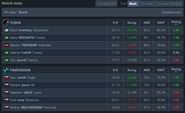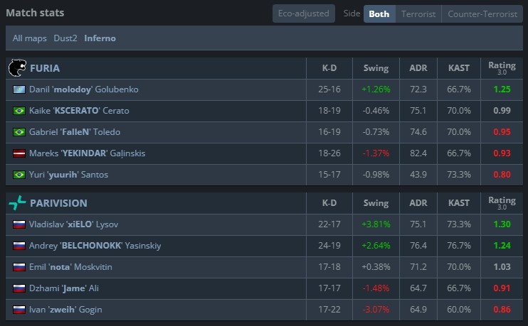 FURIA:molodoy、yuurih、FalleN、KSCERATO、YEKINDAR