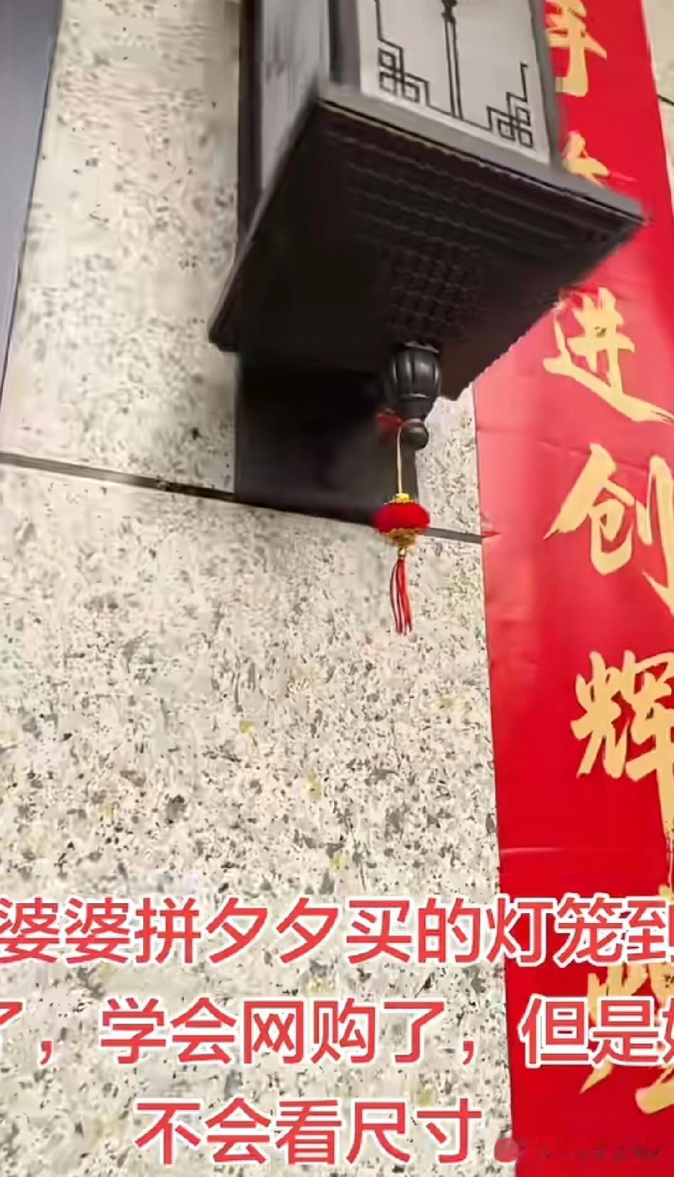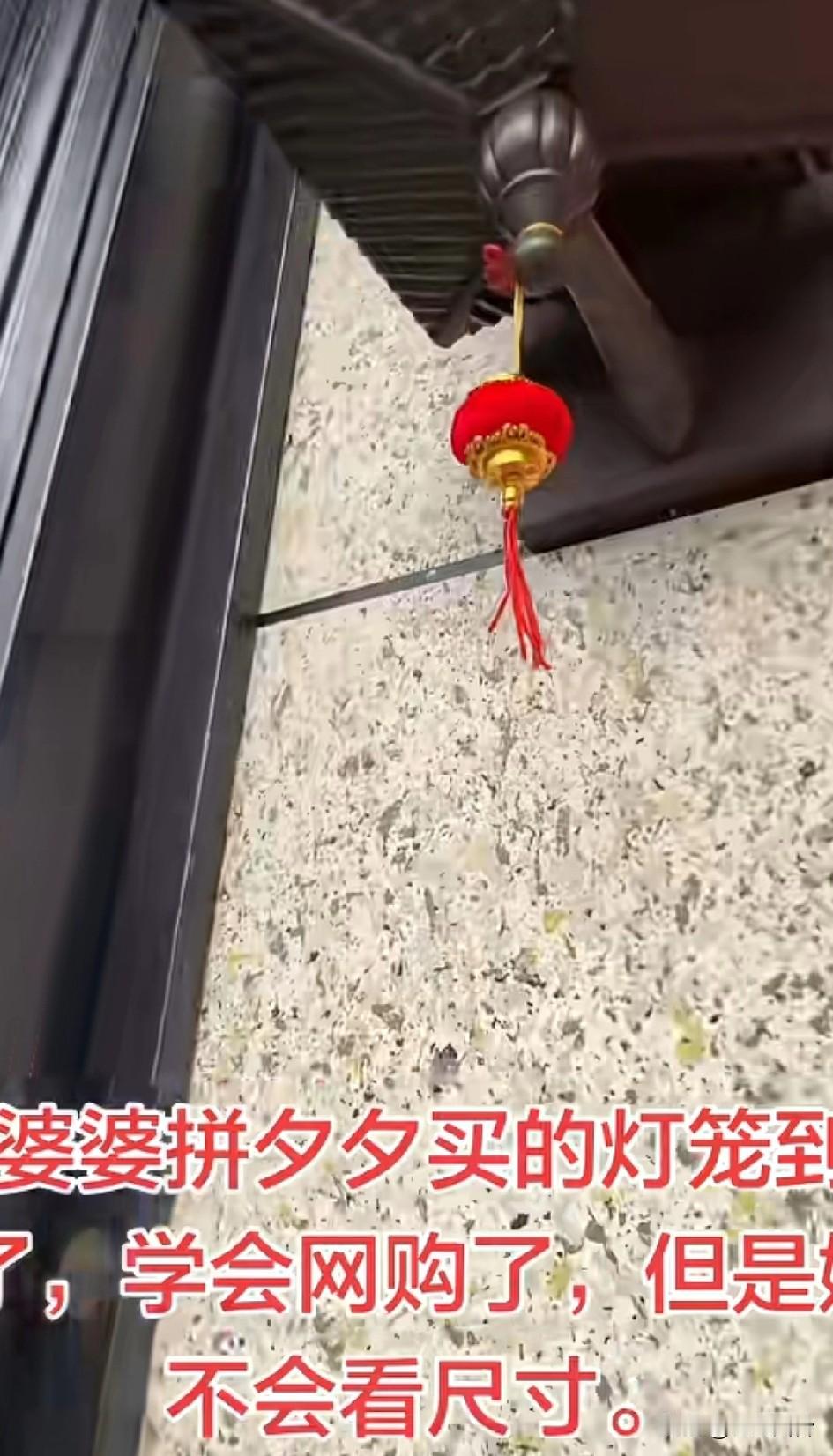 婆婆学会网购了,拼嘻嘻买的红灯笼到了,大门也是时尚了,挂上了耳环 灯笼倒是真的灯笼,就是不会看尺寸!近视镜戴了没看见 ,老花镜也没看见,放大镜终于看见了。小孩肯定能发现今年挂灯笼了,大家是不是看到镜头的特写才瞧见红灯笼的。别笑,年轻人也经常忘记看尺寸,网上图片看到大大的,收到货才知道还分大小的