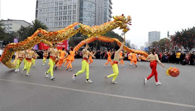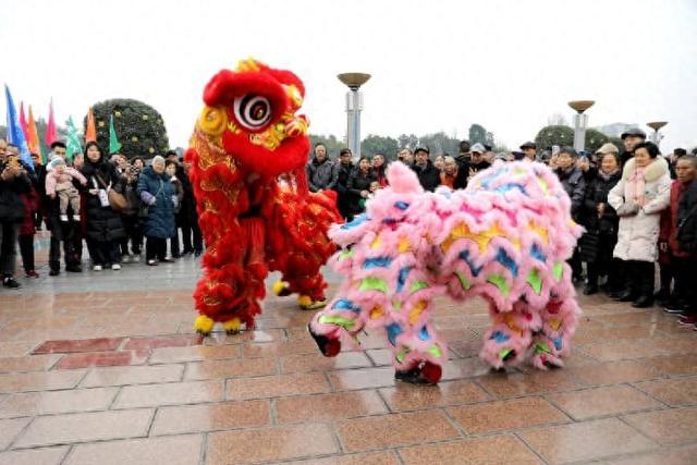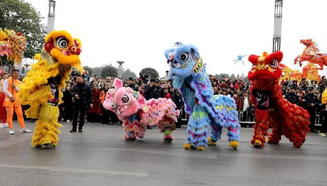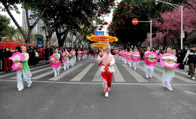 2月17日,农历大年初一,四川省广安市广安区举行“龙腾賓城·狮舞新春—千龙千狮闹新春”春节民俗街头巡游展演活动,当地群众积极参加特色民俗活动,过红火中国年。