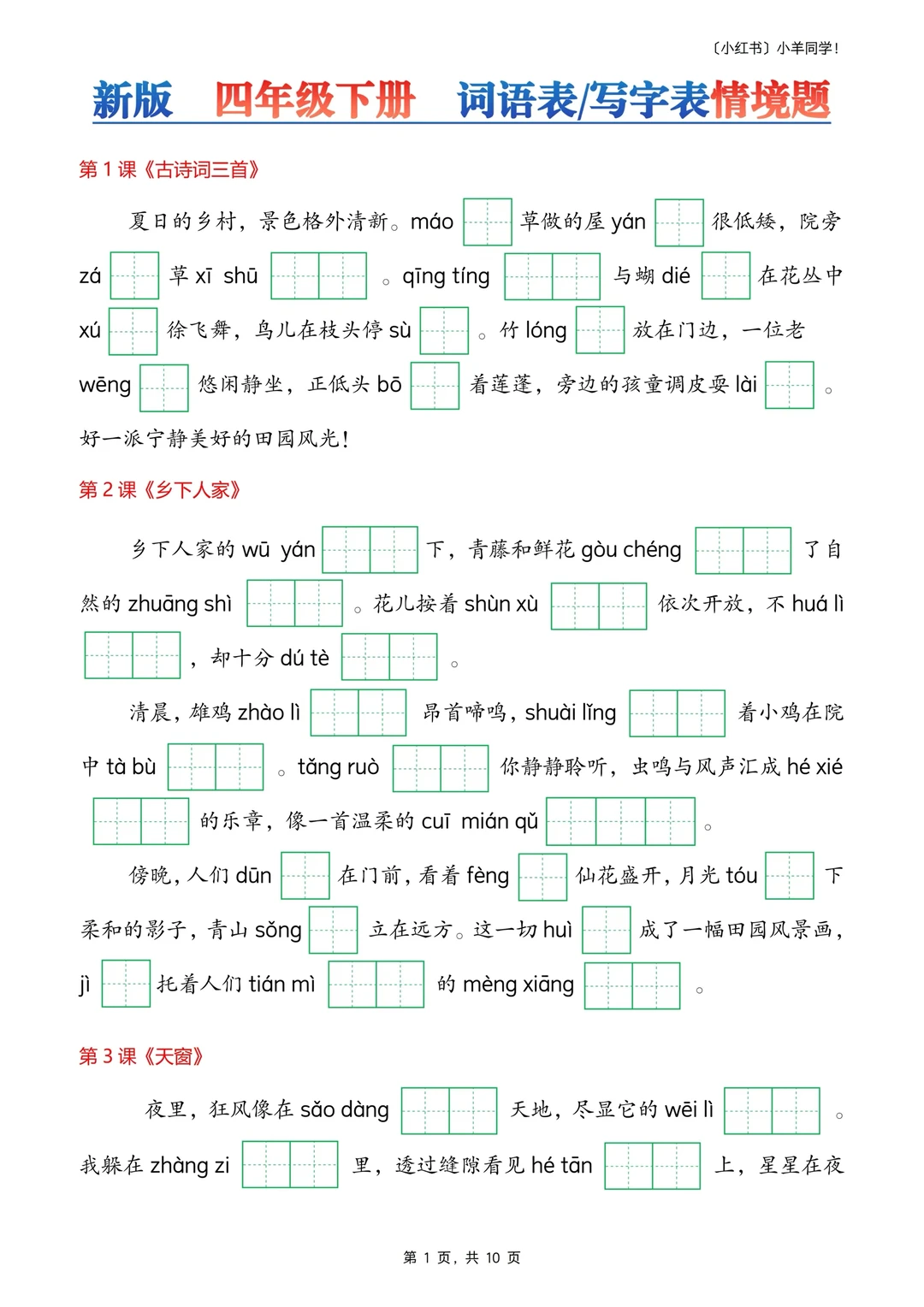 文件3️⃣写字表+词语表情景题,10页。