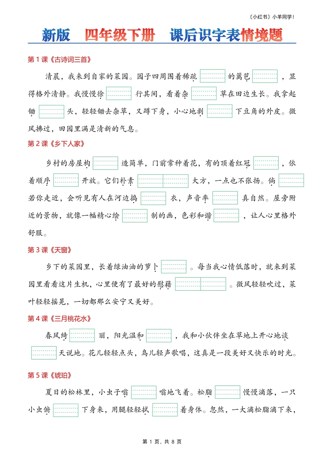 1⃣ 不仅可以练习课后生字词,还可以根据“短文”练习写作。