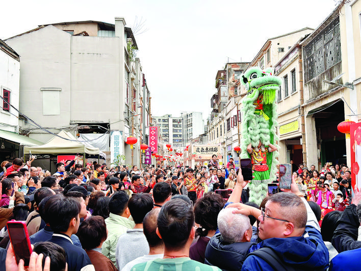 大年初一,水东街的醒狮表演吸引了很多市民游客驻足观看。惠州日报记者张艺明摄