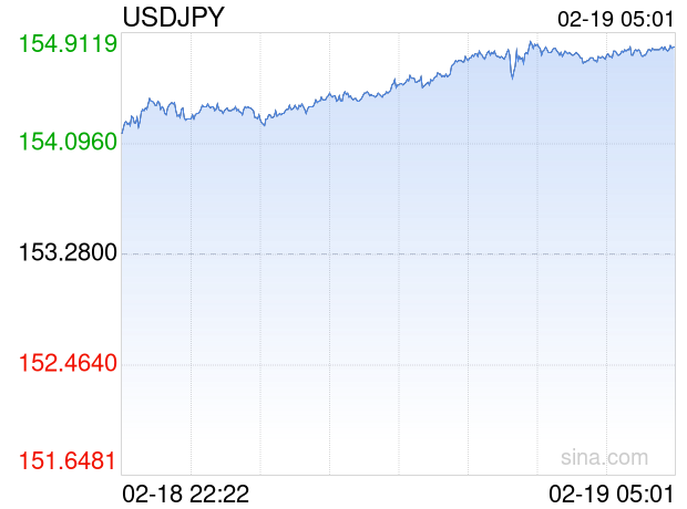 新浪外汇消息2026年02月19日,截至05时00分,外汇市场上美元兑日元汇率突破1美元兑换154.7900日元。涨幅为0.9851%
