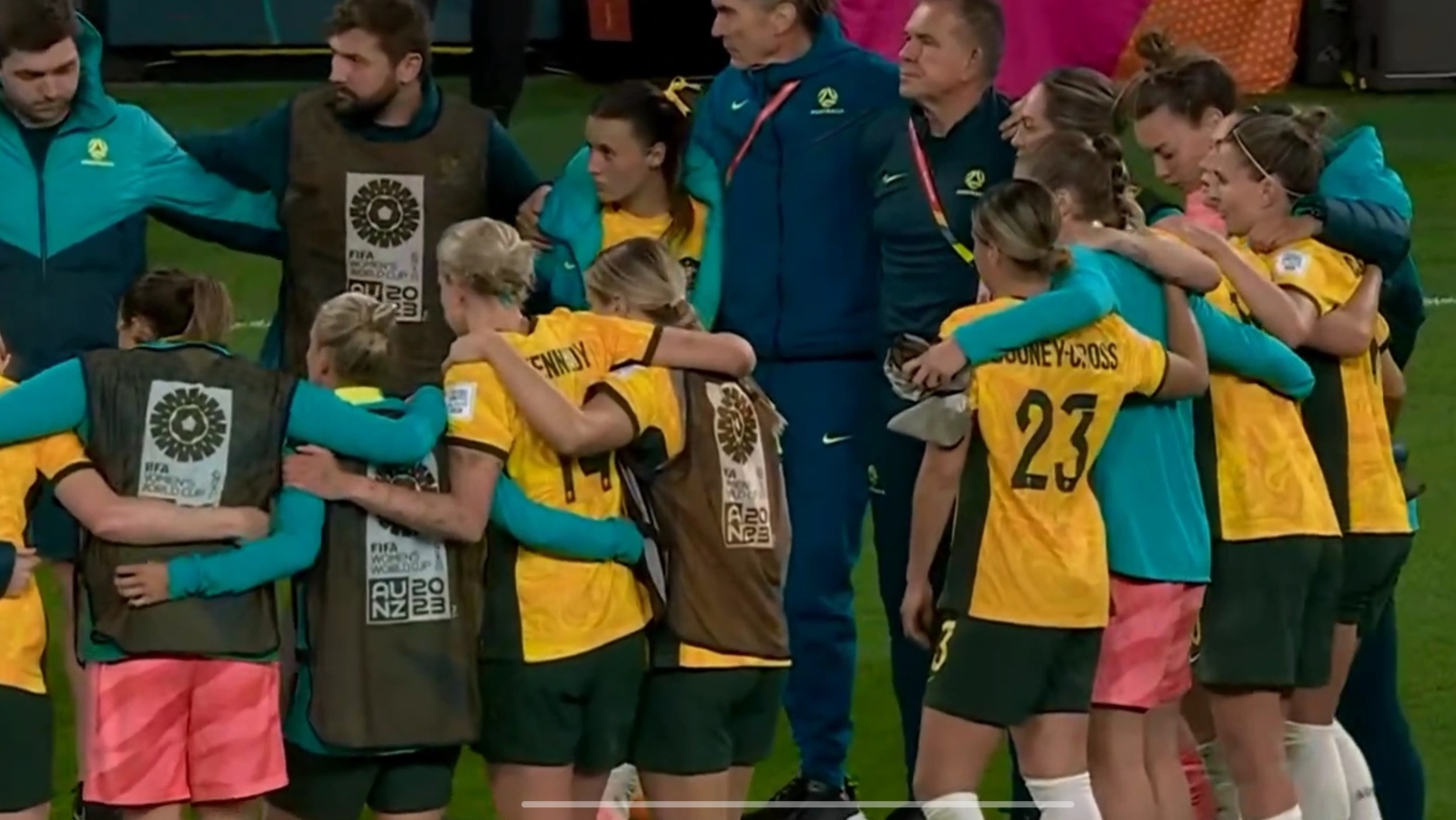 所以说目前整体的这样一个情况,对于这一支非洲球队来说一片光明,没错,他们这场比赛结束之后啊,应该说是有非常大的希望能够晋级了,所以所有的球员都是,陷入在巨大的狂欢当中,但是澳大利亚女足呢,今年其实也有很大的困难啊,她们因为缺少了科尔,所以说前两场比赛的进攻组织啊,在这样的一个强力箭头缺失的情况下,确实有一定的难度,小组赛都变得扑朔迷离了,A组的新西兰,以及这一组的澳大利亚,虽然这场比赛失利了,我们看还是第一时间,澳大利亚女足围成一圈,互相之间鼓励,提升信心,因为现在比赛还没有结束,还有最后一轮只要他们去努力,出线还是有希望的。