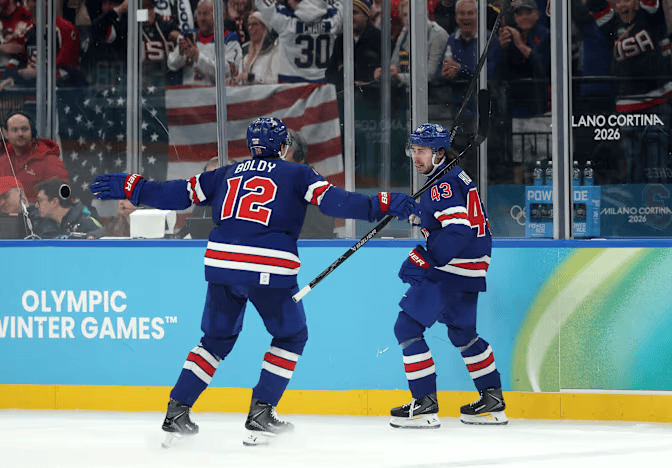 虎扑02月19日讯据ESPN消息,经历了一番惊心动魄的较量,美国队在2026冬奥会男子冰球四分之一决赛被瑞典队终场前扳平后,凭借奎因-休斯于加时赛中的绝杀惊险取胜,即便是最经验丰富的球员也紧张到了极点。