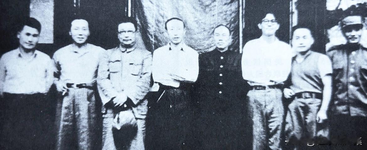 1951年,中国人民志愿军停战谈判代表团部分成员合影,右三起:乔冠华、邓华、解方