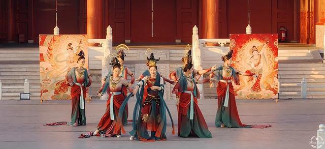 众多演出取材于大同历史文化,营造出一幅如梦如幻的画卷,描述出天下大同的盛世美景。其中,《壁画飞天》是代王府精心创排打磨的演艺节目,共有12名年轻的女性舞者参演,演出中,美丽的“飞天”衣带当风,翩若惊鸿,千年壁画中的曼妙身影跃然眼前,邀观众共赴一场跨越时空的视觉奇境,特别是以威亚技术将舞者悬吊空中,真正营造出飞天意境,赢得现场观众惊奇喝彩。