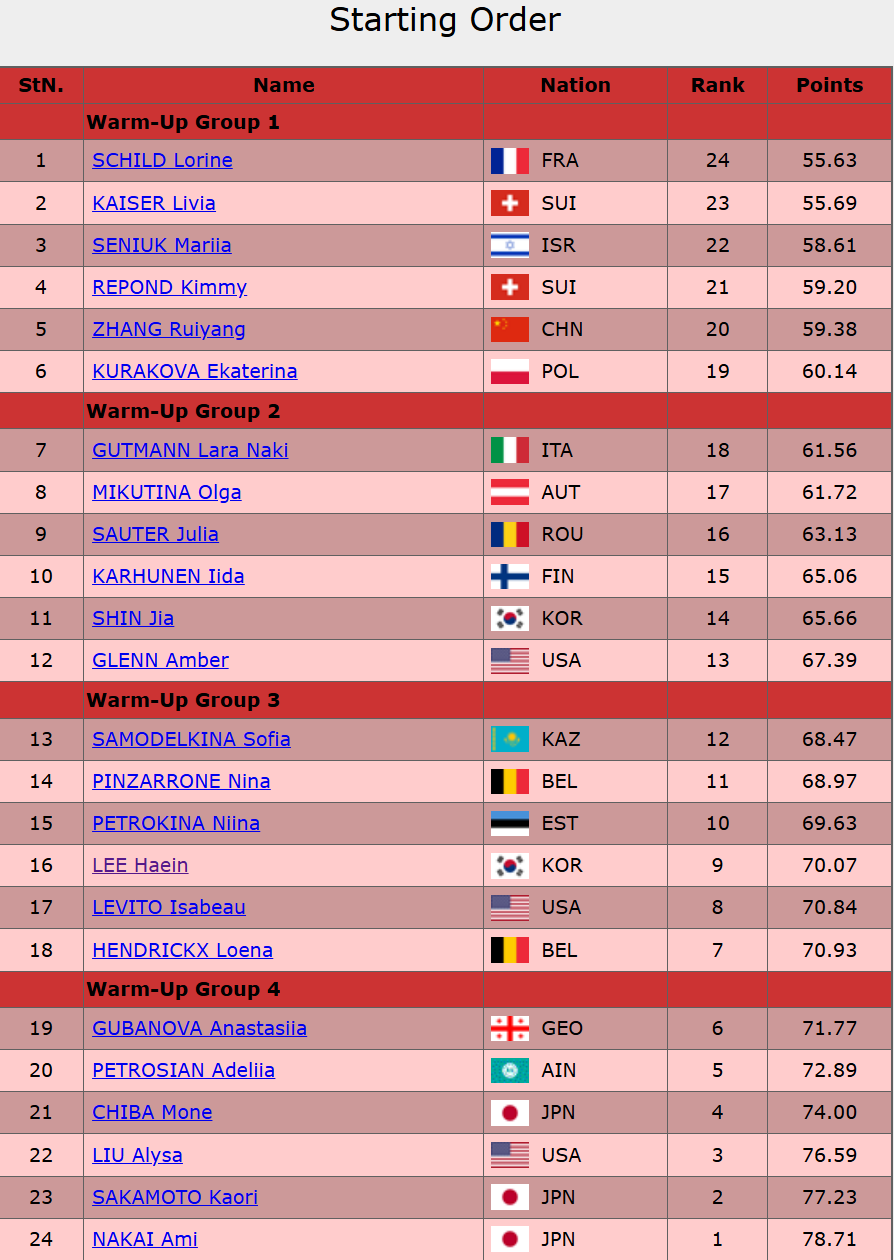 赛前,各选手的出场顺序已经公布,张瑞阳将位于第1组第5位登场,预计登场时间为凌晨2点39分。