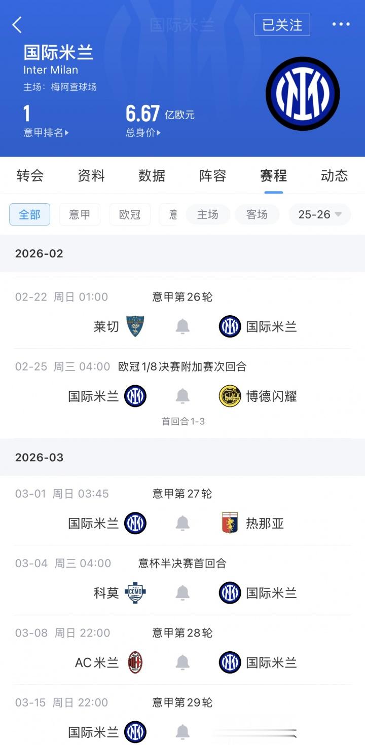 国米未来一段时间赛程: