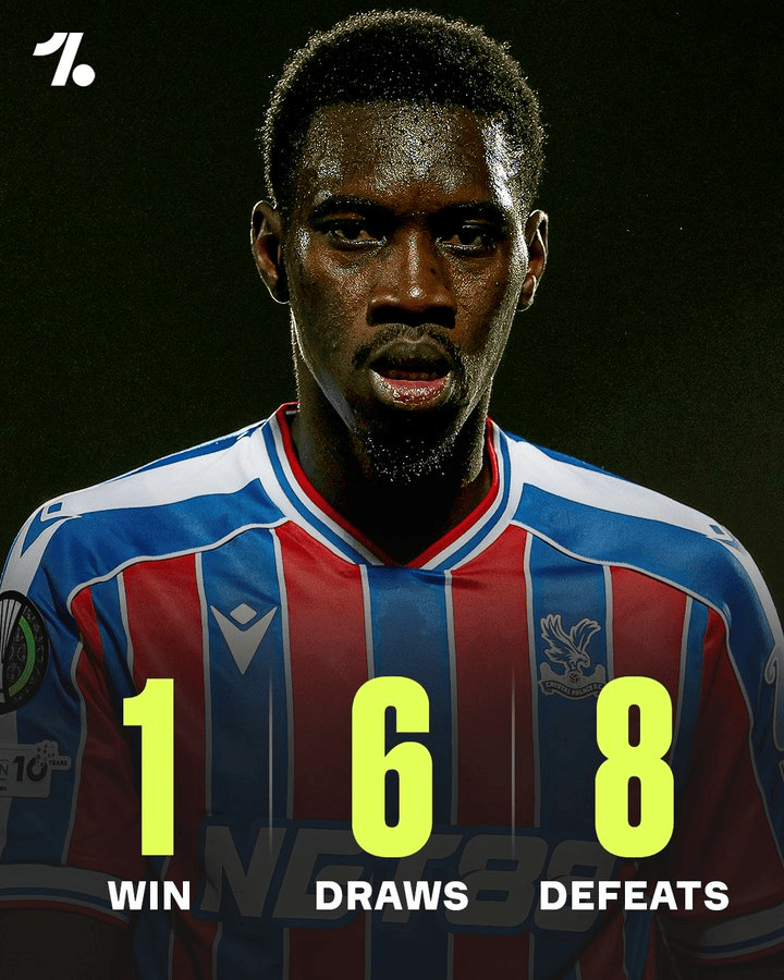 水晶宫最近15场各项赛事,只取得了1胜6平8负的战绩