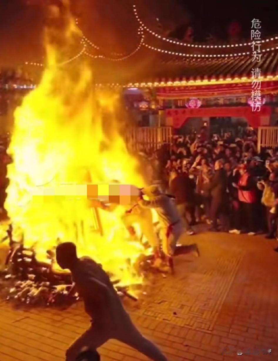 莆田元宵习俗抬轿撞火,第一个进的得多大勇气啊,不论装备,就那义无反顾的冲进去,需要莫大的勇气 以前光着身子冲,信仰的信主要在这个信上。以前都是淋水,光着身直接冲,现在穿衣服是被政府以安全要求的。光身冲火都保持几百年了。这个时候要屏息不能呼吸,一来没有空气会有窒息感,二来会吸入高温气体。 恐惧是人类的本能,勇气是人类的赞歌,习俗要传承,人也要保护好。
