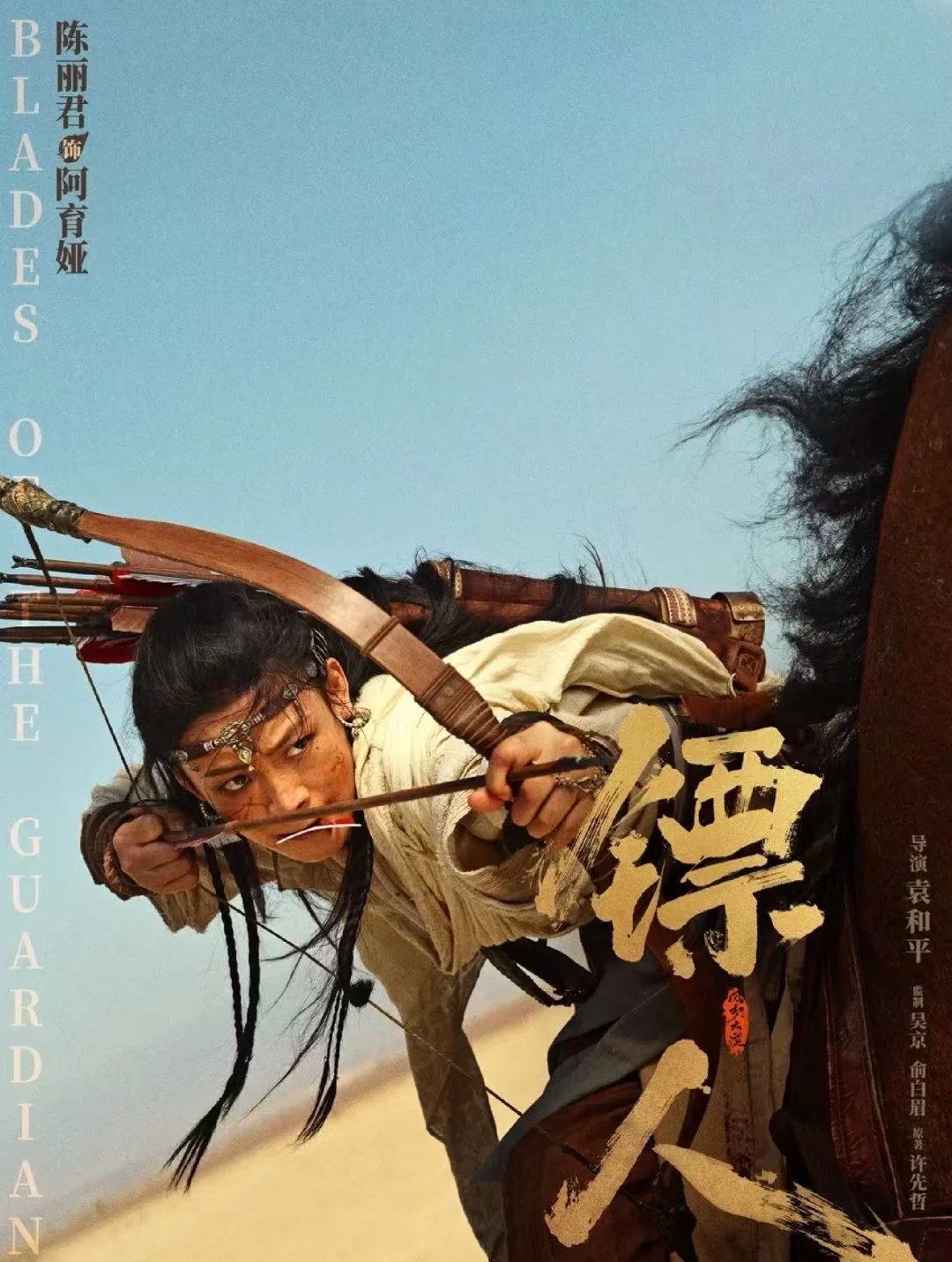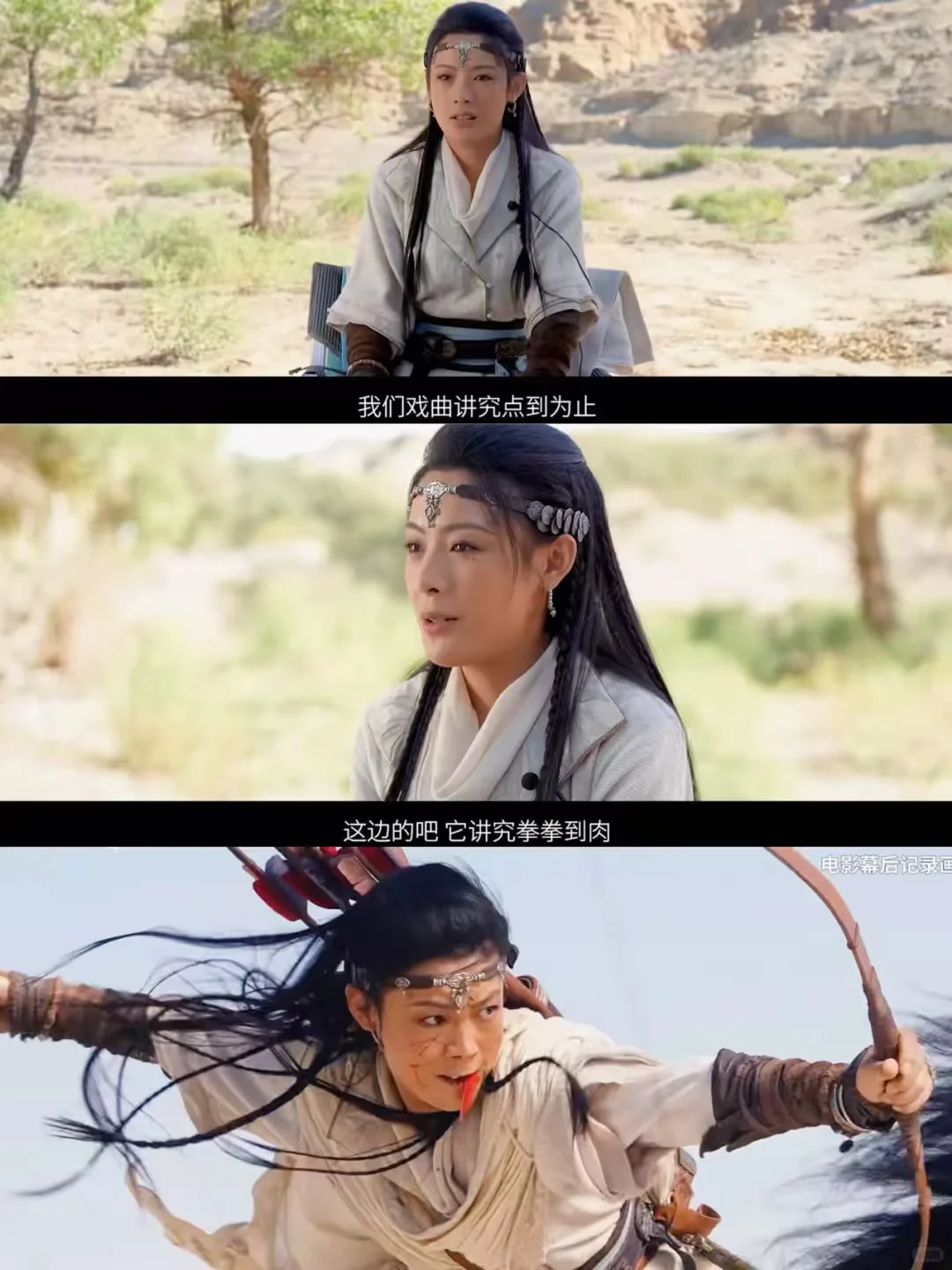 看《镖人》时陈丽君出现的那一刻,彻底跟过去感觉不一样了,她是西域莫族长之女,是英姿飒爽的大漠女战士,在电影里做出了巨大的突破,完成了很厉害的武侠动作,骑马射箭都不在话下[飞吻R]