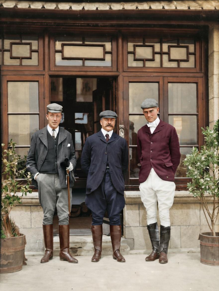 这张照片拍摄于1905年的英国租借地威海卫(今山东威海),从左至右,这三位分别是:庄士敦 ,后来成为末代皇帝溥仪的“洋帝师”,当时他在威海卫担任政府秘书,是骆克哈特的副手。骆克哈特 ,时任英国驻威海卫最高行政长官(专员),是一位汉学造诣深厚的殖民官员。金文泰 ,后来的香港总督,当时他是骆克哈特和庄士敦的牛津校友。
