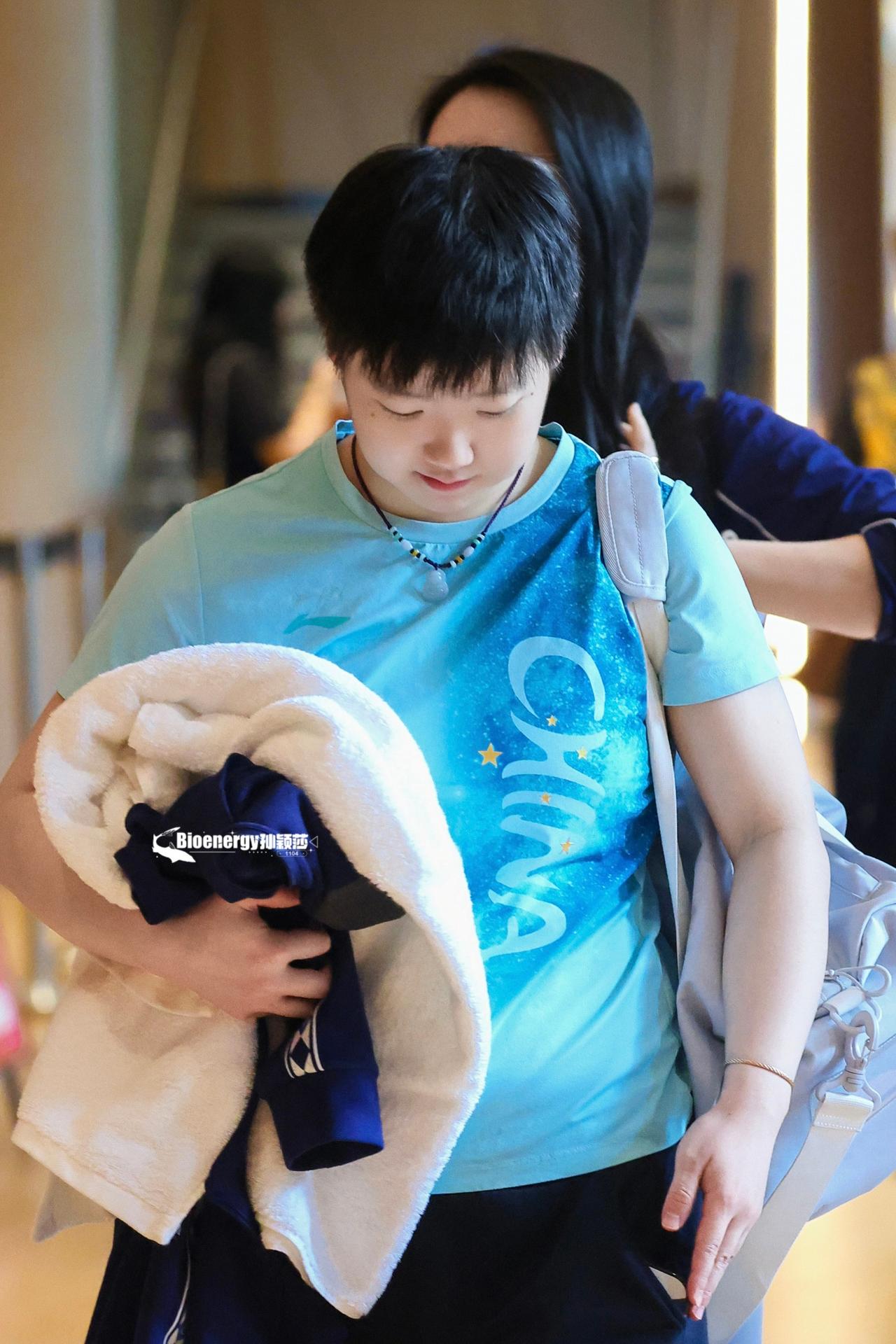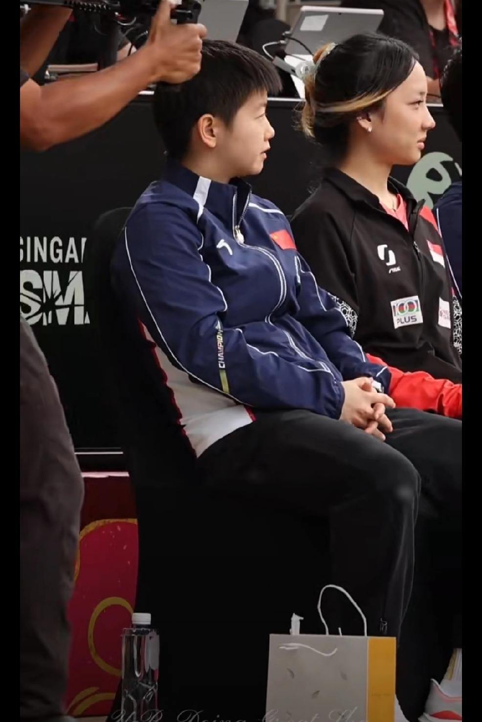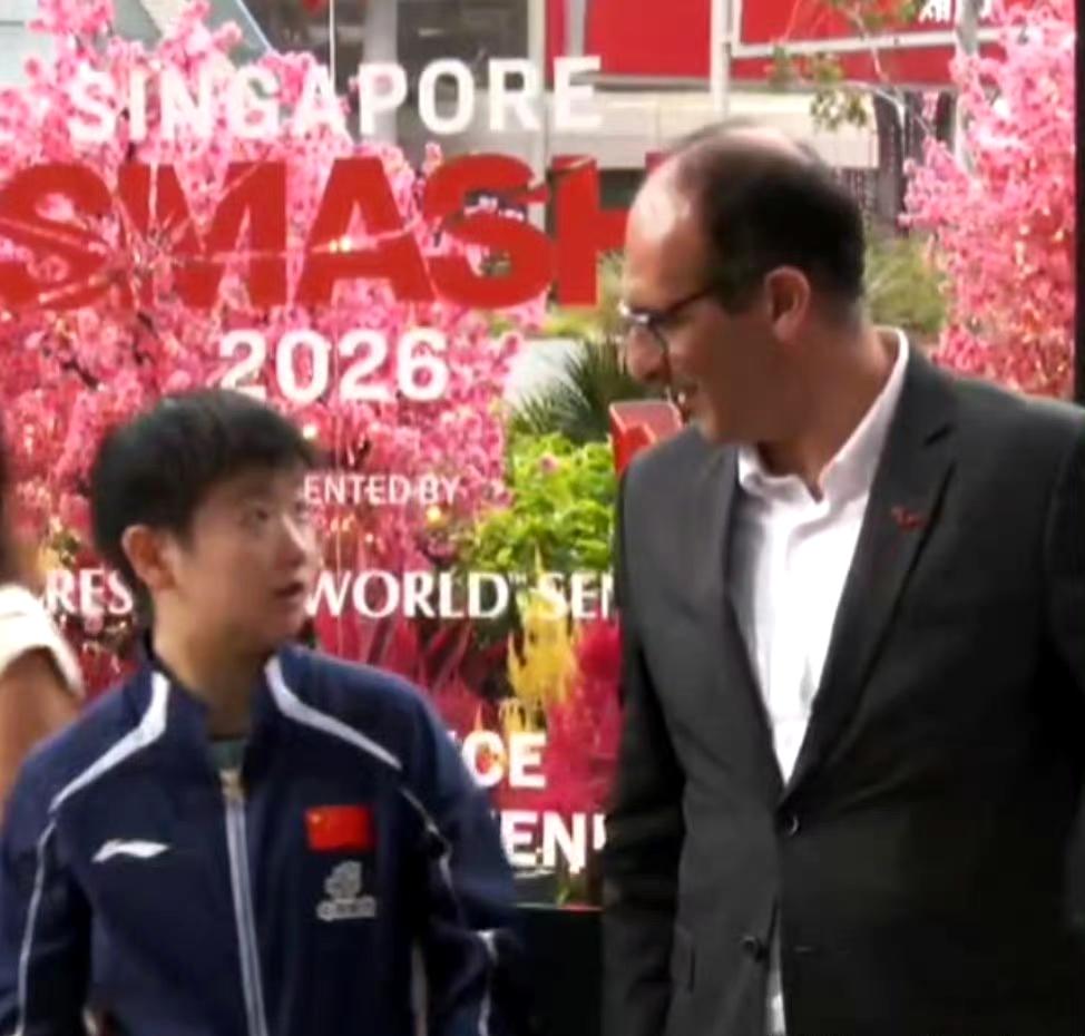 昨天在在新加坡大满贯抽签仪式上, 抽签的嘉宾在台上看到莎莎忍不住与莎莎交流起来, 哈哈,莎莎看了一下, 貌似心里话:咋这么高[黑线]。 有网友拍下了上训路上, 下雨了, 工作人员跑着追着孙颖莎给她打伞, 有礼貌的小女孩说:自己可以的。 可可爱爱真性情, 让人怎能不喜欢。 孙颖莎笑容