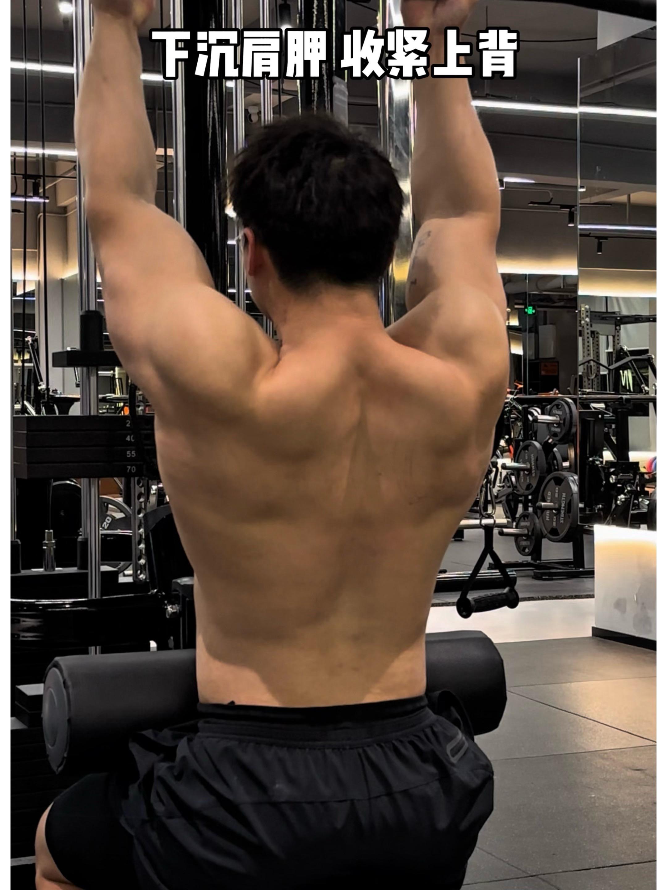 下拉过程中,要稳定好肩胛骨,始终保持肩胛下沉,避免上斜方肌代偿,同时