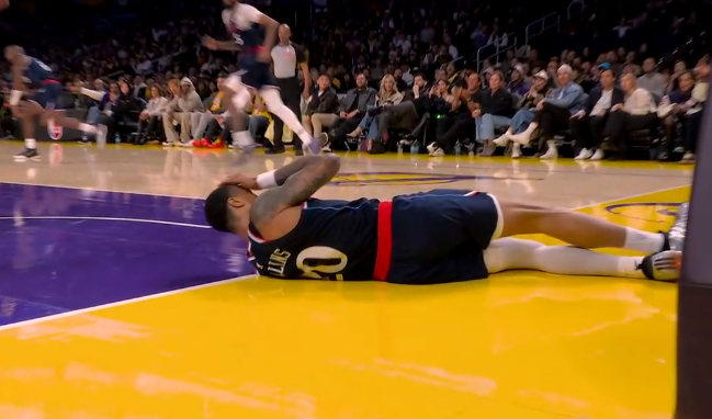 科林斯空接被干扰失去平衡,头部着地眼角出血被扶回更衣室