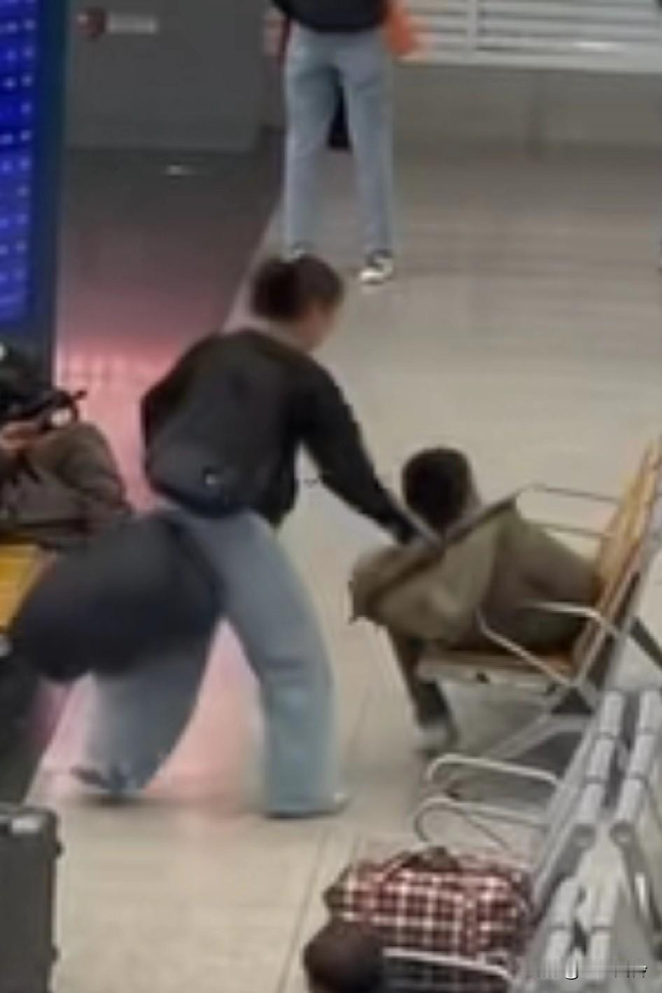 以为小两口在候车打架,万万没有想到是,小哥的腿卡在椅子里拔不出来,小娘子拔不出来就走了 这是什么原理?这是勾股定理,腿卡在椅子缝里了,哈哈哈哈哈哈死腿快出来啊,脚拔不出来还挨顿打。越急越卡,女的还生拉硬拽。这要是传到外网会怎样,中国的座椅卡大腿,中国制造质量挺好 直接把椅子搬走呀。在外面随地大小躺的人真的很烦,还有一动不动脱鞋子袜子那种