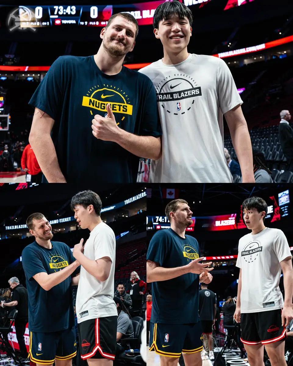 掘金54分大胜开拓者杨瀚森约基奇合影杨瀚森4分1篮板