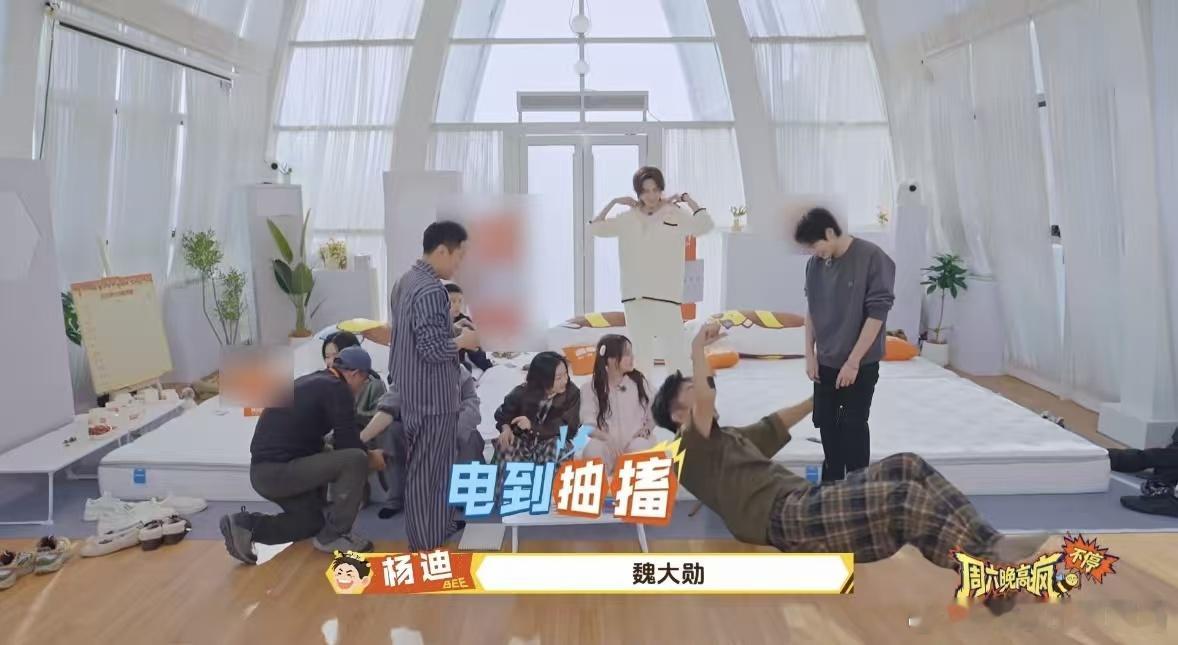 杨迪被魏大勋电到抽搐魏大勋给杨迪戴手环时悄悄加等级,嘴上却只说三挡,直接把杨迪电到在地上抽搐,一边大喊不对一边挣扎,这画面让人笑到停不下来