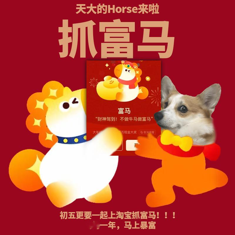 初五的财神有多忙 一代人有一代人的财神要迎,马年初五抓富马,这很合理吧!2月10日-2月24日,上淘宝搜索【淘宝抓马】,参与抓马游戏,就有机会黄金和瓜分千万奖励,马年马上来财~财神来不来的我不清楚,但我抓了多少马心里还没数吗? 上淘宝抓马淘个好彩头抓,抓的就是这个马!分,分的就是这个奖!