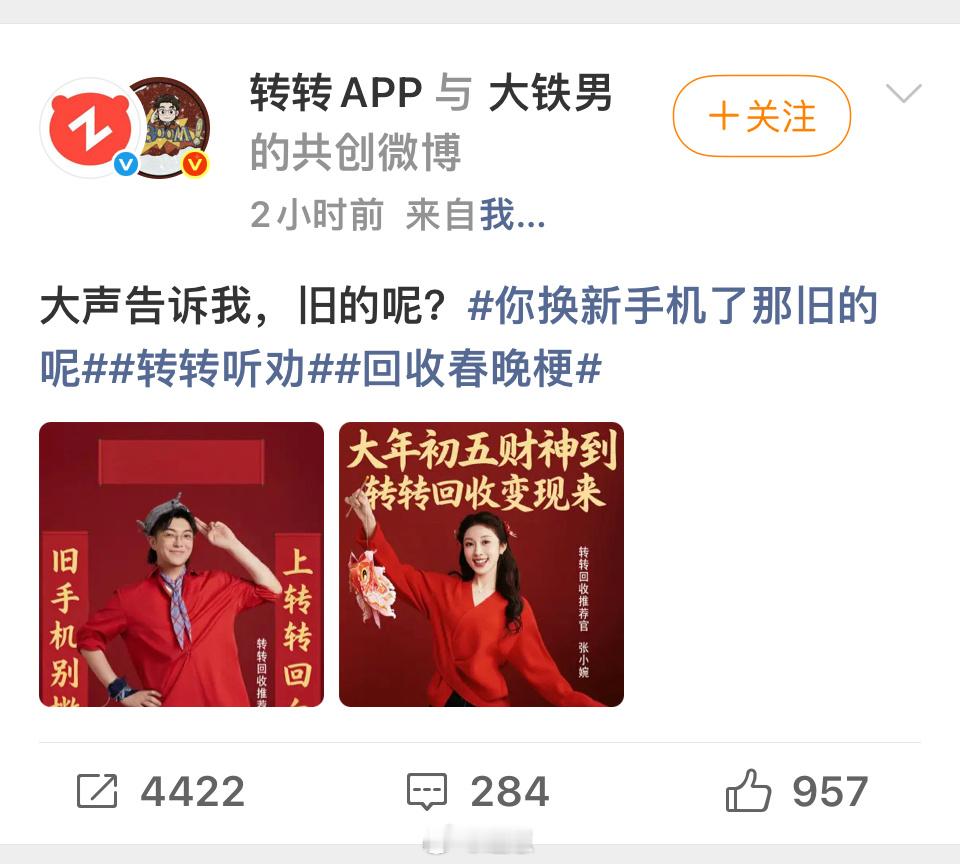 听人劝真的能吃饱饭 转转你是懂听劝的!春晚和的“财神”居然让你请来了!这波流量该你吃!你换新手机了那旧的呢转转听劝