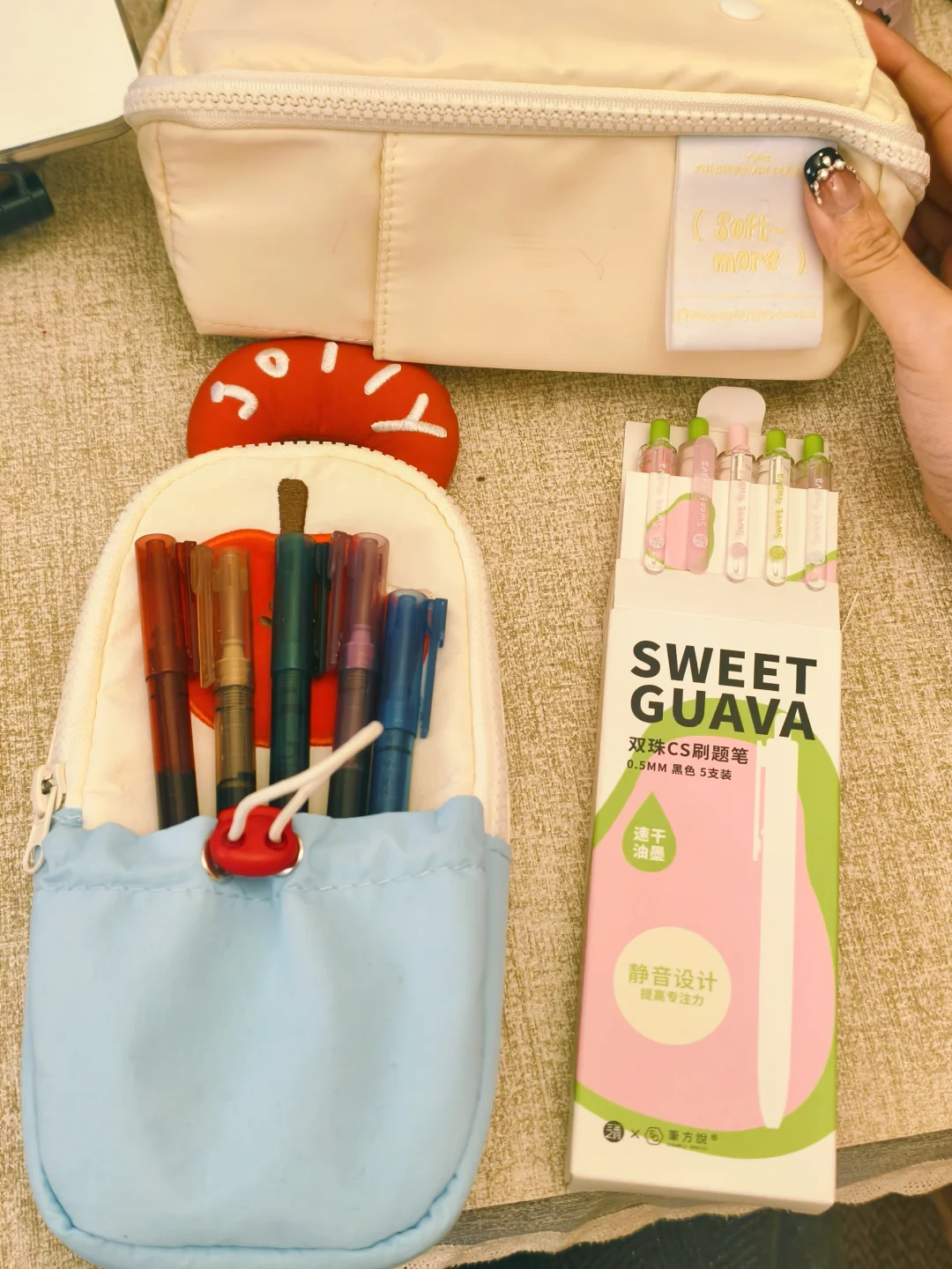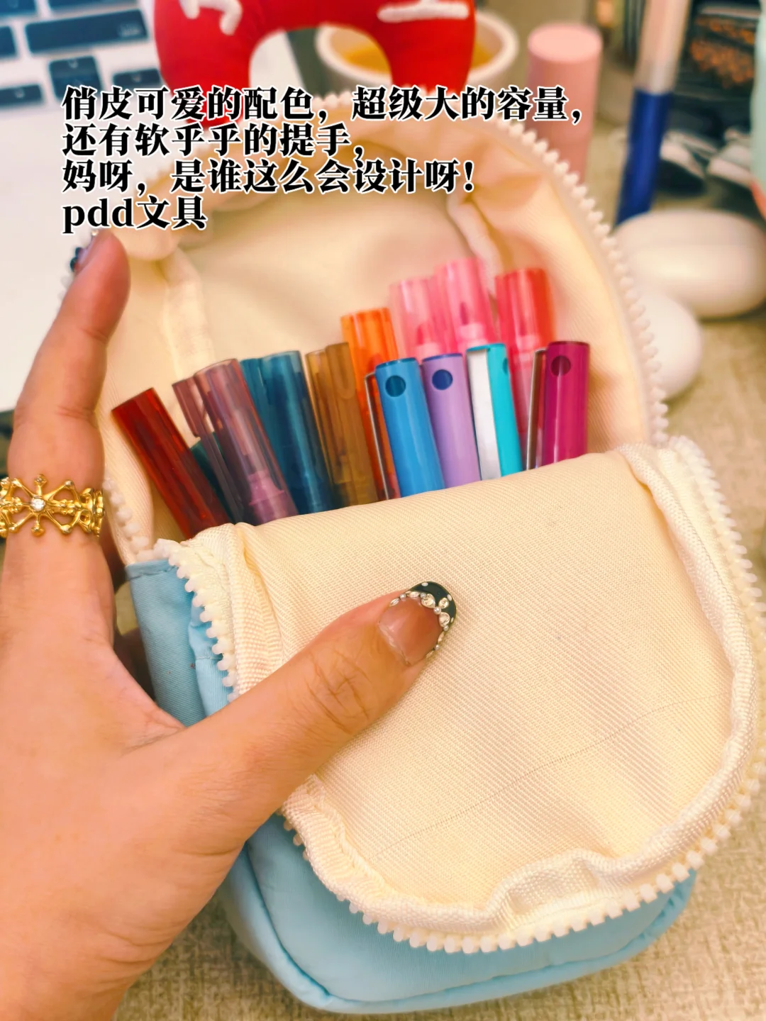 女孩子真的很容易对这种可可爱爱的东西没有抵抗力啊!虽然家里已经有好几个笔袋了,但是看到它的第一眼我还是毫不犹豫地买了单。俏皮可爱的配色,超级大的容量,还有软乎乎的提手,妈呀,是谁这么会设计呀!