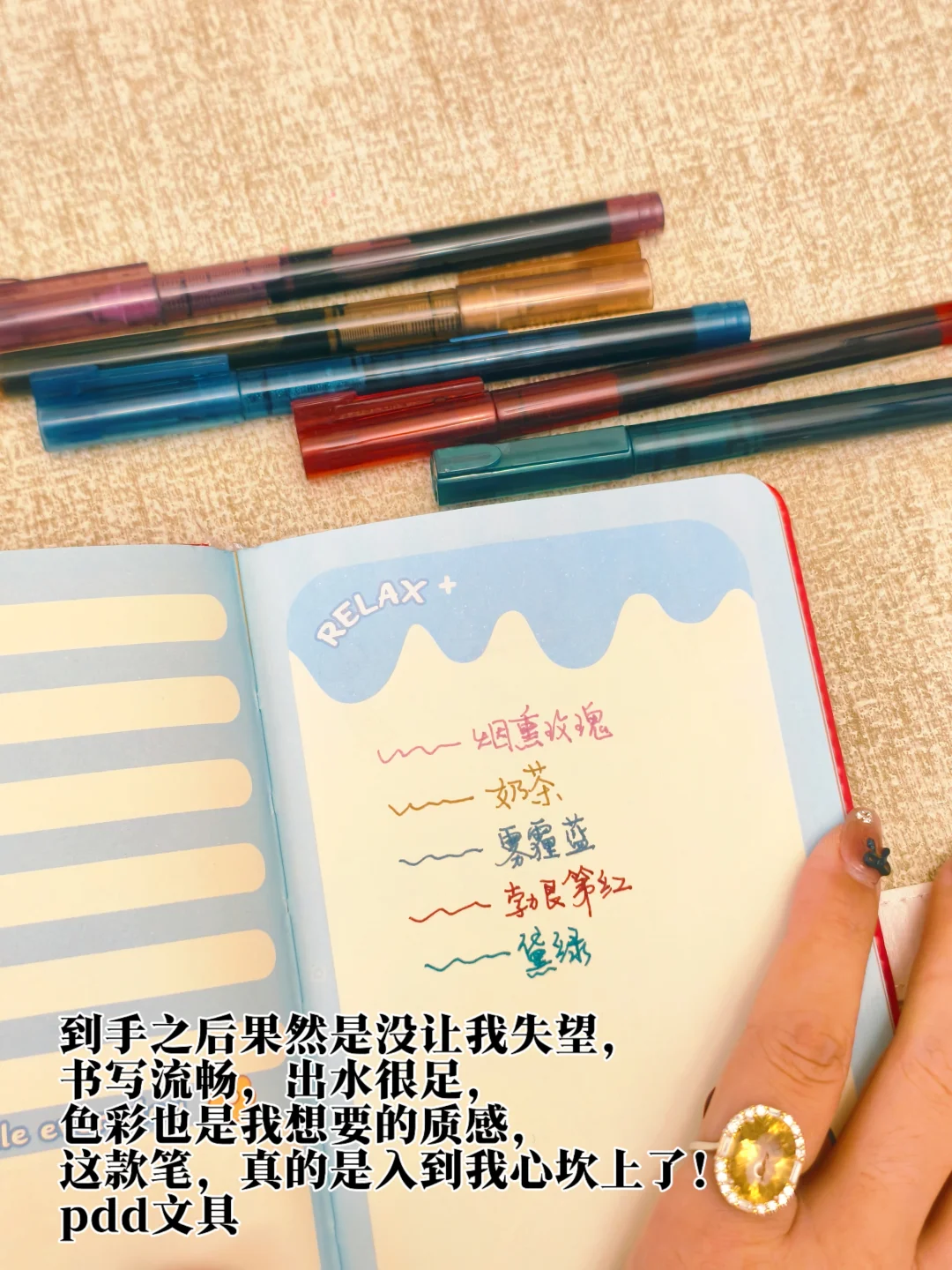 这款笔可真的是我最近的超爱了,感觉自己上了年纪以后越来越喜欢这种莫兰迪色系,低调不失品质,让我一下子就入手了5支。到手之后果然是没让我失望,书写流畅,出水很足,色彩也是我想要的质感,这款笔,真的是入到我心坎上了!