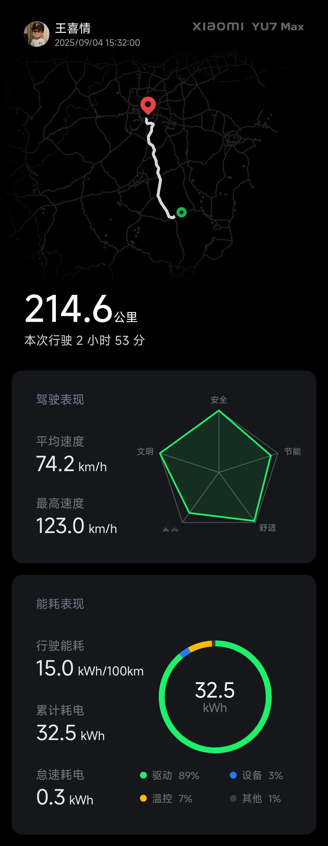 但是,我一点都不慌,回家230km,不用充电,能轻松到达,再美美的享受3毛多一度的家用电费。小米yu7