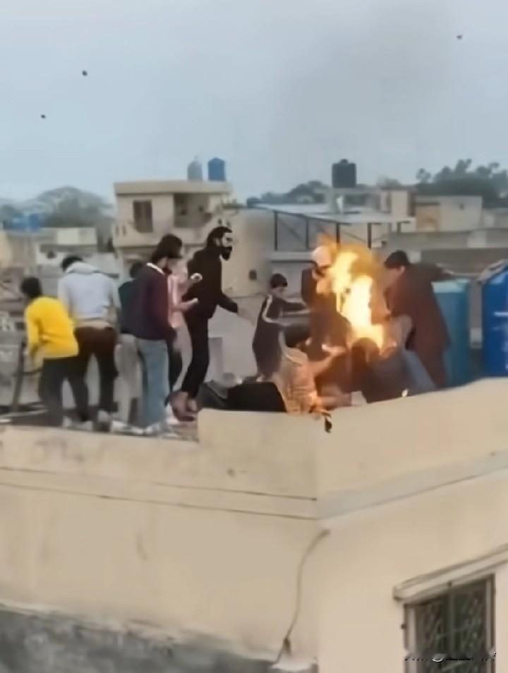 阿三玩喷火把头给烧着了,黑色衣服小孩,灭火的水瓶,装的是油,那小子把油浇上去灭火? 《功夫》里的情节再现了,功夫里也有,师爷拿烈酒给琛哥灭火。黄衣服的小孩火上浇油,还引燃了黑衣服小孩,真的最怕猪队友。废了,呼吸道肺部严重烧伤感染。人越多越乱,没有一个能帮上忙的,越帮越忙。所以我们家家户户都搞个水缸,老祖宗果然有先见之明