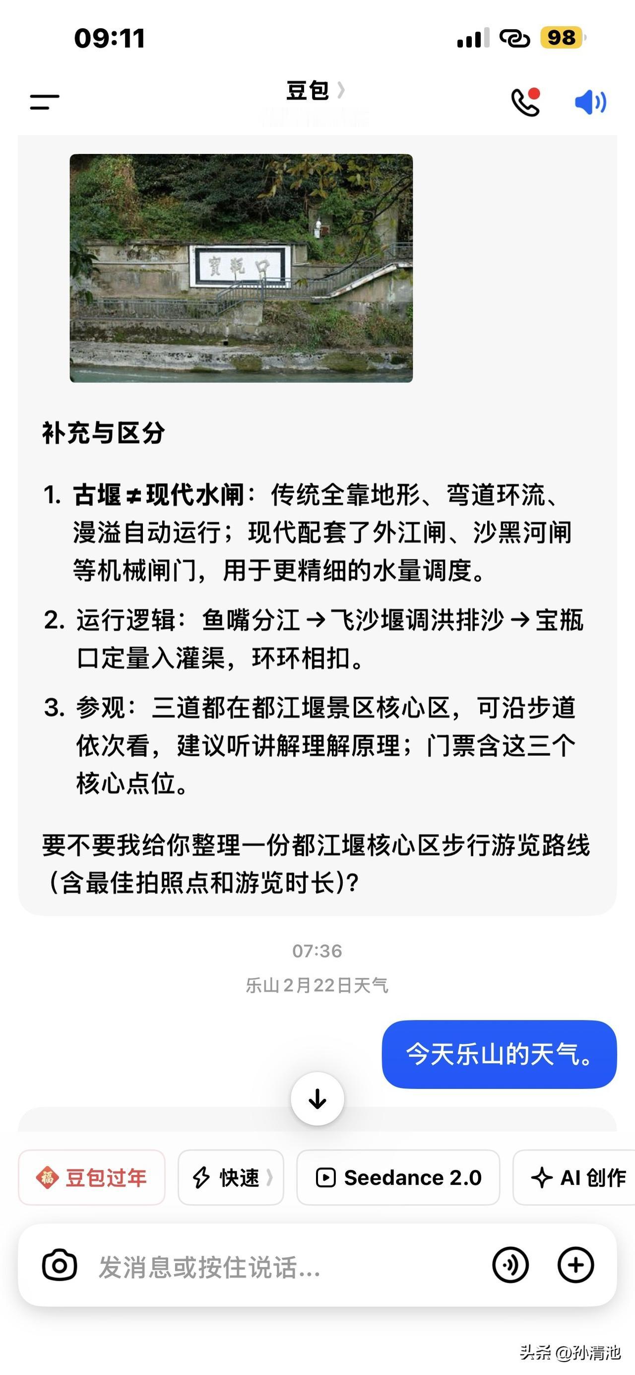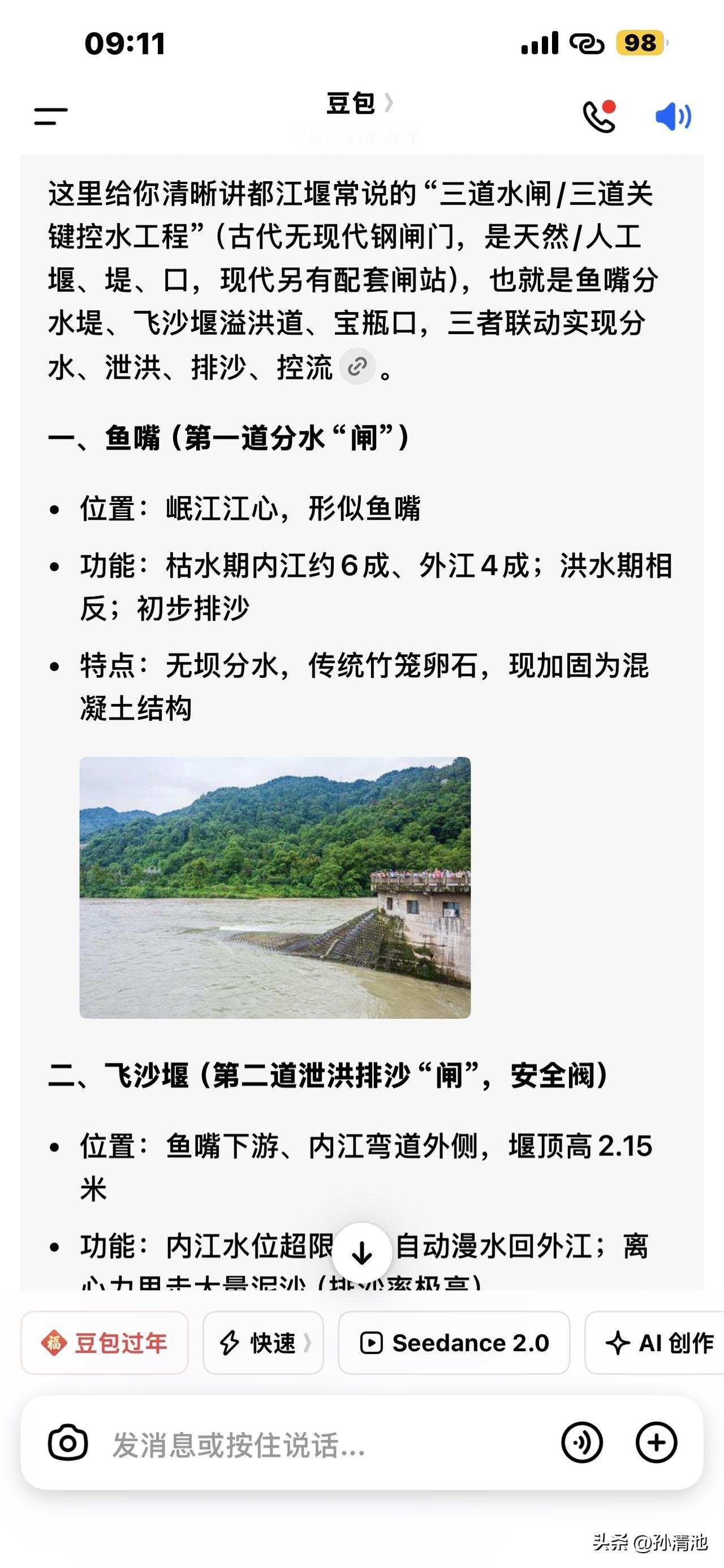 分享我这周有趣的事:昨天我们一家4口去了都江堰。公元前256年李冰设计、组织修建了世界上最伟大的水利工程《都江堰》。水涝时外江和内江是6:4分水,保障成都不因水大被淹;水旱时外江和内江是4:6分水,保障成都有充足的水源。都江堰有三道分水闸,1.鱼嘴 2.飞沙堰 3.宝瓶口[笑哭][笑哭][笑哭][笑哭][星星眼][星星眼][星星眼][星星眼]