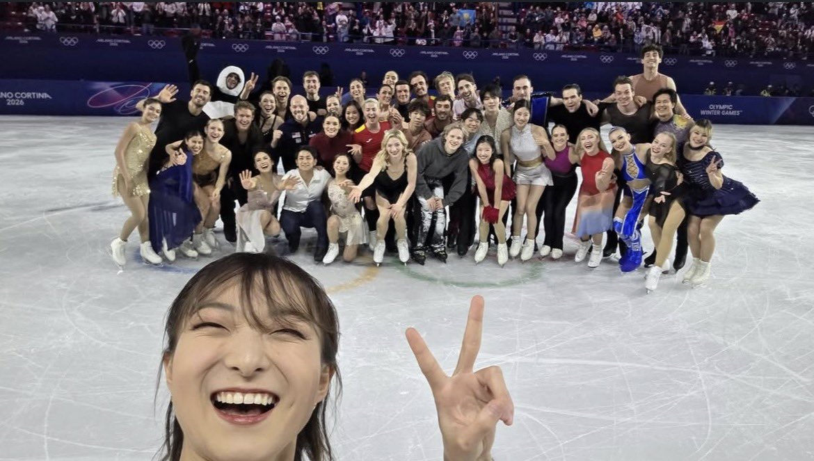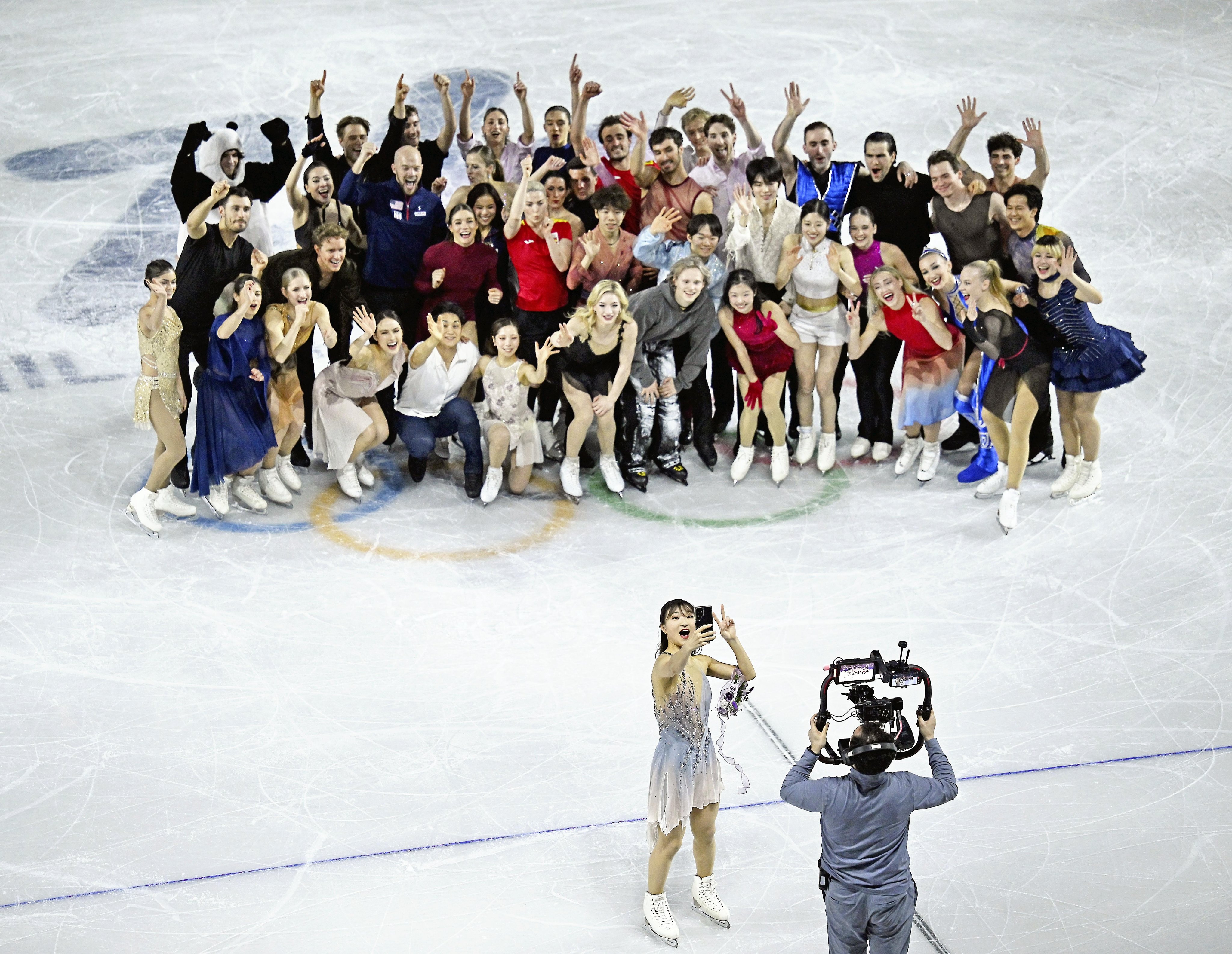 表演赛结束后,即将退役的日本名将坂本花织手持手机,带头组织所有表演选手合影留念,她身后所有的表演选手们笑容洋溢,众人相聚一堂完成了集体大合影。