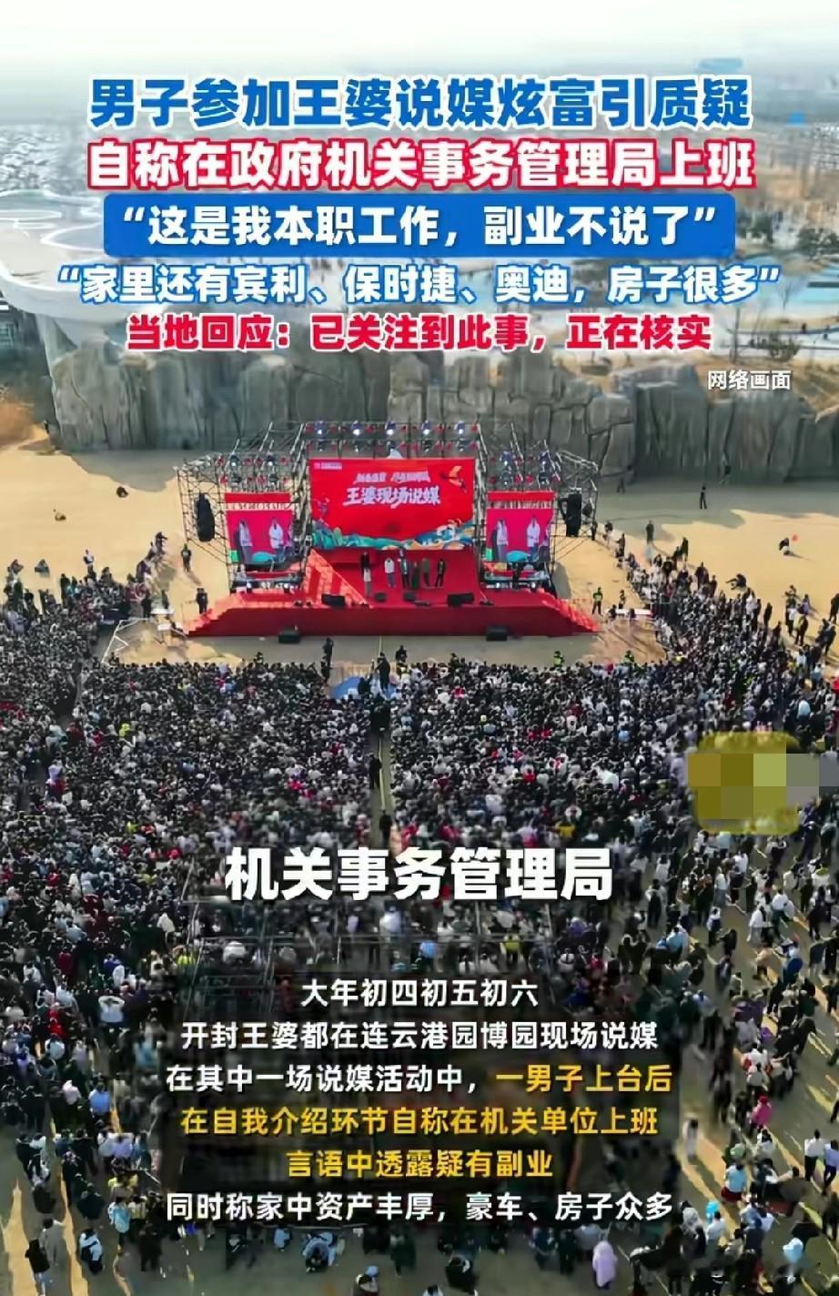 自称在连云港政府机关事务局上班这男的啊纯粹就是一个没情商没智商的人。这样炫富就是在自断后路。你相亲就相亲呗,还这么嚣张,你这是故意在炫富,即便你家里真的有宾利,保时捷和很多房子,但能不能低调一点? 如果家里真的有,而且收入合法,那咱们尚且不说,家里有钱的人也很多,这也正常。但是作为政府机关公务人员在公众场合这样炫富,老百姓自然很反感,而且更不可能全心全意为劳苦大众服务,难以与老百姓达到共情。至少给人的感觉他是一个不靠谱的公务员。 其二,如果该男子炫富所说的是属实的,但是收入合法性被质疑或者资产来源是有问题的,那确实捅了一个大篓子,连云港纪委有活干了,一旦被查实确实存在腐败问题,这小伙大功一件,绝对是大义灭亲的善举。 其三,小伙在相亲现场炫富所说的纯属虚构,压根就没有或者只是为了娱乐或引起相亲女子的注意力,这样做显然也是把搞砸了,你想想会有哪个女子会看上一个36岁还这么轻浮的男子? 既然是相亲,那就拿出诚意去寻找那个与自己志同道合,三观一致的人,如果披着伪装相亲,总有露出马脚的时候,到那时岂不是贻笑大方了!