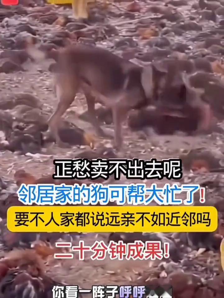 正愁卖不出去,邻居家的狗可帮大忙了,要不人家都说远亲不如近邻吗?二十分钟成果。 养了几百只红公鸡,由于今年行情不好也卖不出去,没人要,正在这喂食。犯愁的邻居家的大狼狗跑进来了,狗很厉害,邻居拿着跟宝贝一样,也不敢捧它,也不敢作战,也不敢糟蹋。咬鸡比咬人强,叫它咬去。一阵子呼呼通通拿一棚鸡给我干了。 我寻思寻思,咬咬去,不咬我就行,最起码得给它说法。一棚鸡给我处理干净了,我正愁犯愁。