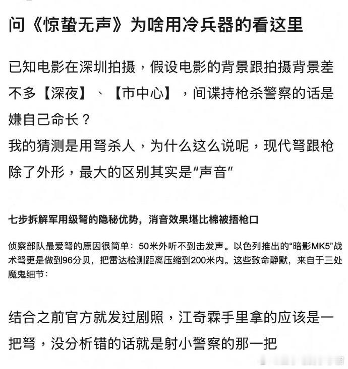 惊蛰无声为什么用冷兵器 剧组真的太懂了!冷兵器既能隐藏行踪,又能降低对方警惕,完