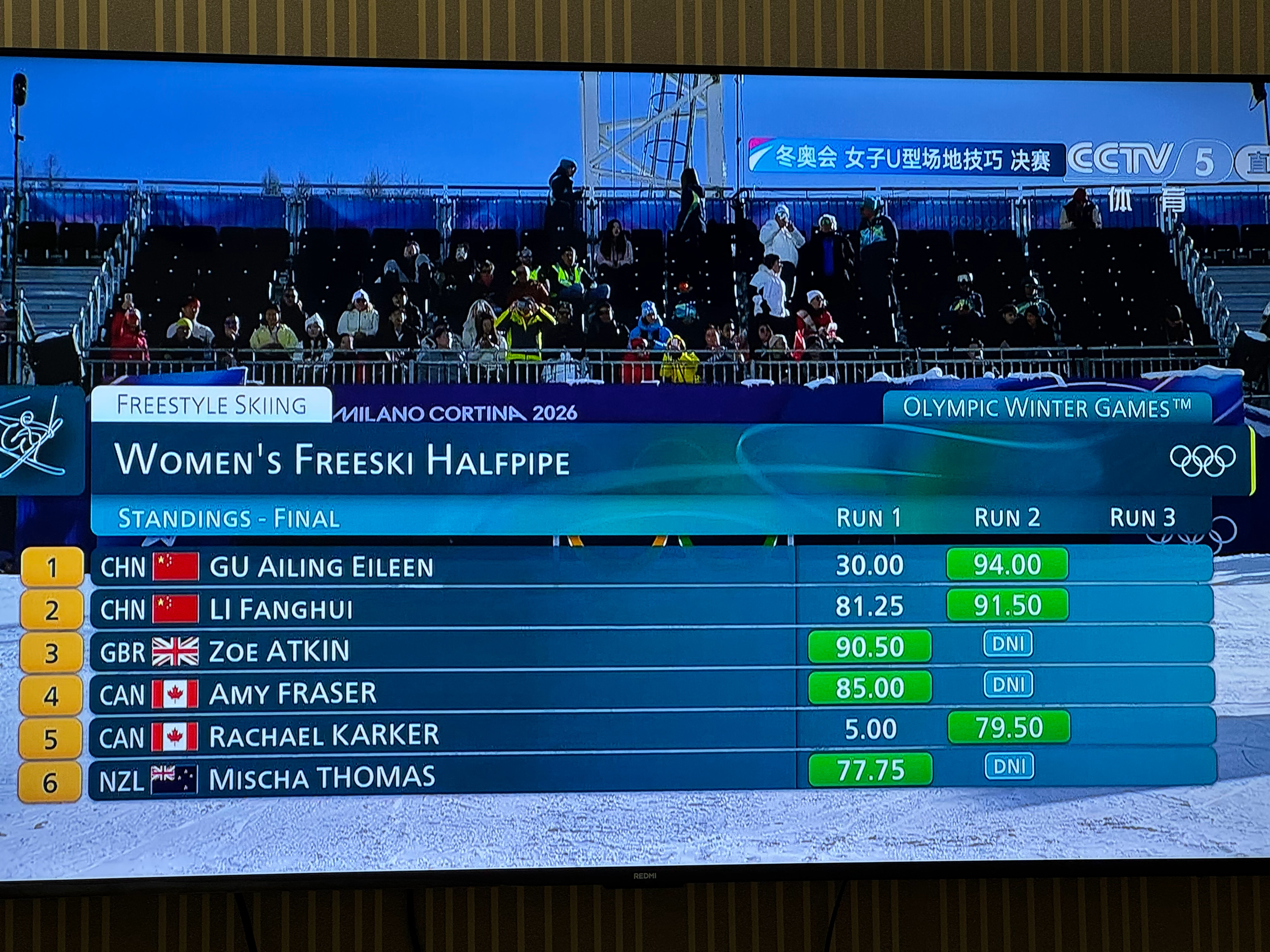 女子U型场地决赛两轮之后谷爱凌、李芳慧位列前二!坐等最后一轮米兰冬奥会