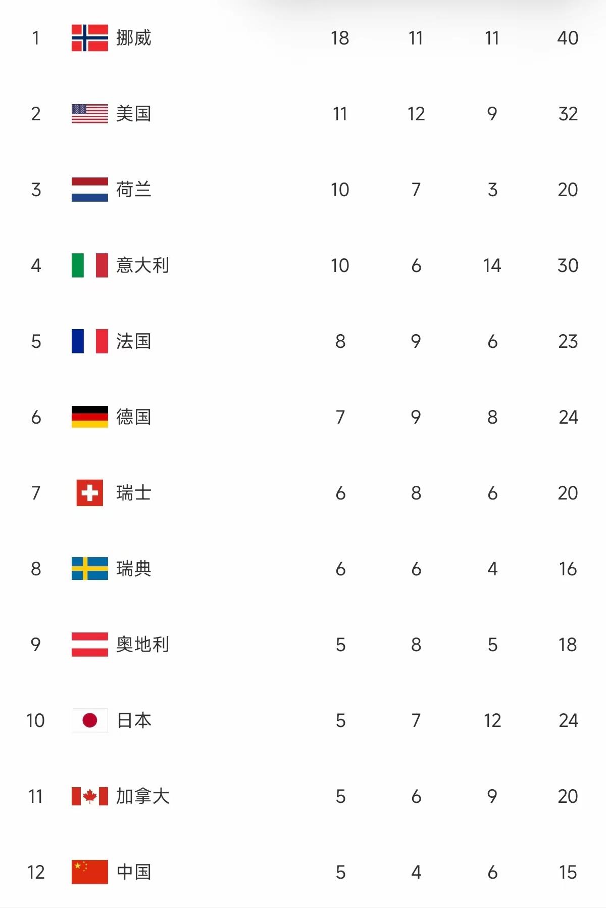随着谷爱凌斩获U型池冠军,李方慧获得亚军。米兰冬奥会,中国队金牌榜最终确定:5块金牌,4块银牌,6块铜牌 本届冬奥会,中国队在前十个比赛日始终未能斩获金牌。随着苏翊鸣在22岁生日当天冲击冠军成功,中国队随即打开金牌账户,五块金牌也是中国队在历届冬奥会上,境外参赛最好的成绩
