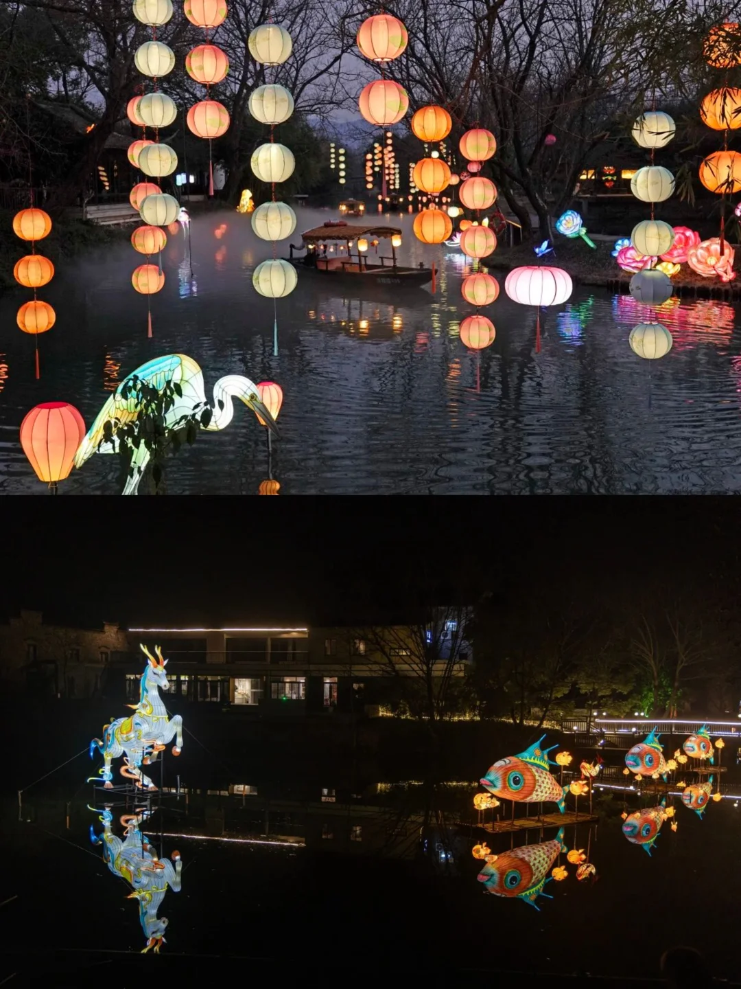 🔥鱼灯、马灯、龙灯、竹编灯、花灯等各种颜色和形状的灯亮起。以黑瓦、木屋、湖水、游船等融为一体,尤其是一条条打着灯的游船行驶在水面上,似灵动的游龙,中式的美经久不衰,让人痴醉不已。
