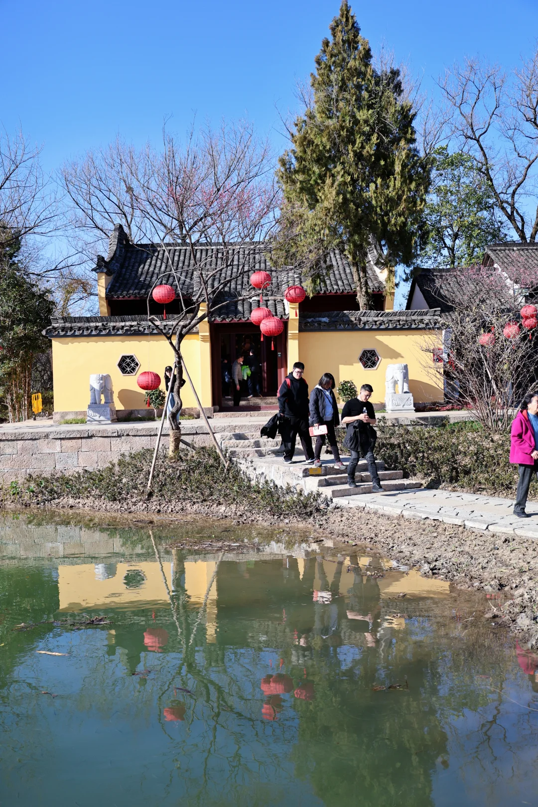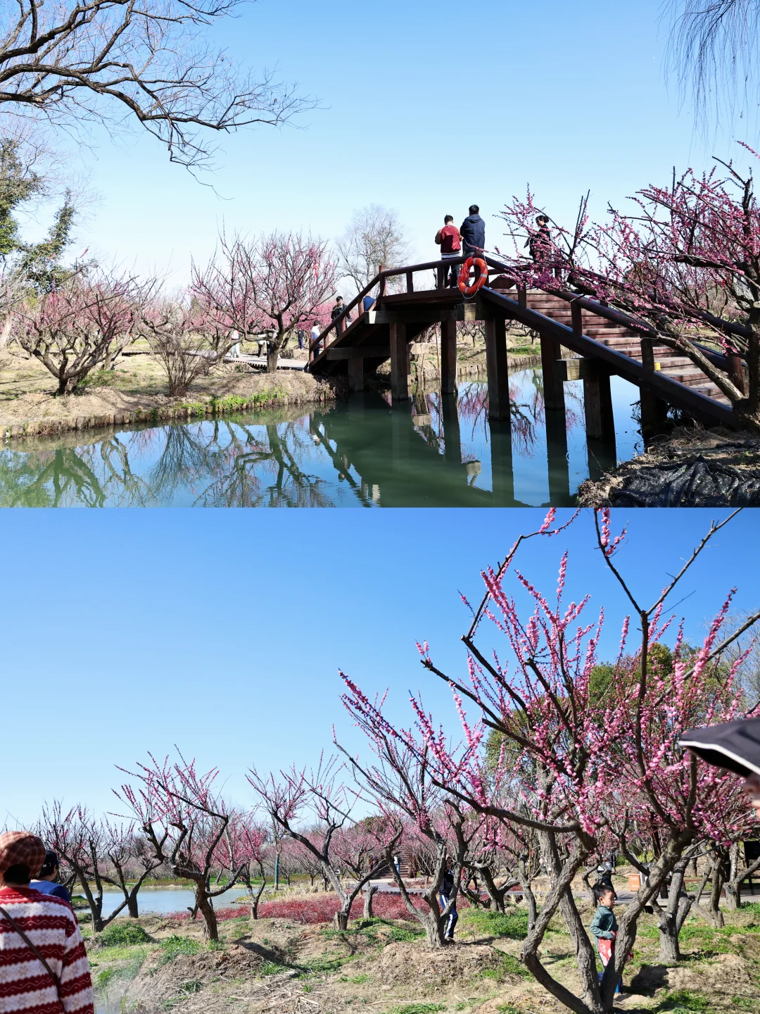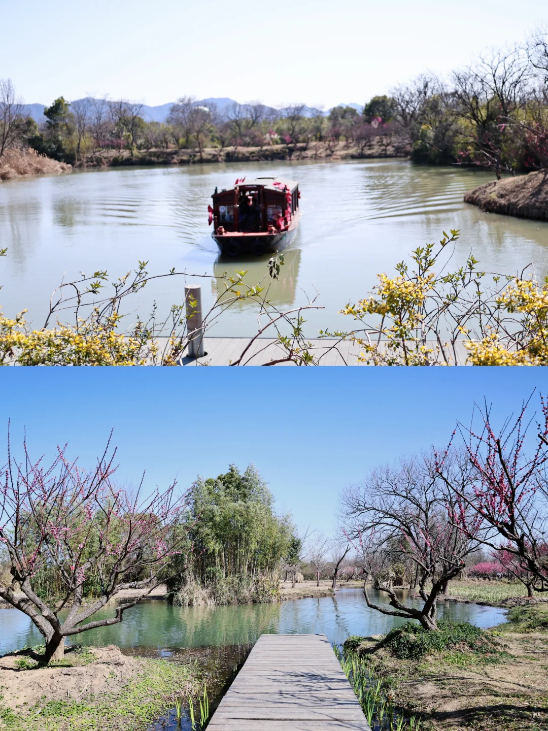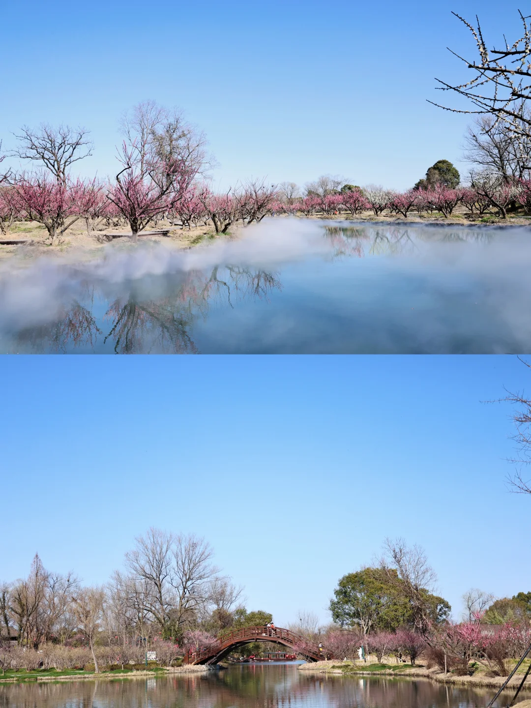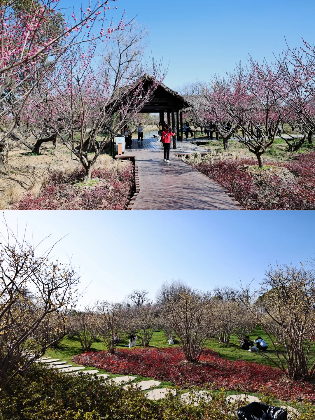 坐着船,到达第一个停靠点烟水庵,公园内梅花尽数绽放枝头,饱满艳丽的花朵开的生机勃勃。沿着步道穿梭其中,连衣服都被花熏得香香的。