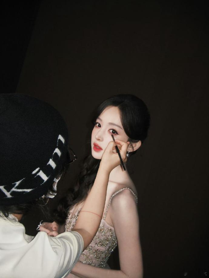 就差那么一点,王楚然的粉色吊带差点滑下来,全场镜头都疯了。她整场发布会,手
