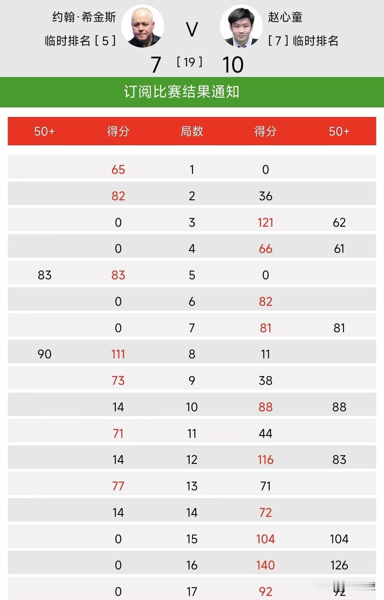 球员锦标赛|又一次书写中国斯诺克全新历史。赵心童10-7战胜希金斯,加冕球员锦标赛冠军 长江后浪推前浪,中国新锐赵心童10-7战胜“75三杰”之一的希金斯,加冕2026年斯诺克球员锦标赛 ,中国斯诺克选手再次登顶世界之巅。 北京时间2026年2月23日凌晨,斯诺克球员锦标赛决赛第二阶段落下帷幕,中国选手赵心童在第一阶段打成4-4平后,第二阶段双方5-5、6-6、6-7、7-7继续焦灼厮杀。最终希金斯体力、精力出现不足,赵心童顶住巨大压力,104、140、92连下三城,以10-7力克四届世锦赛冠军约翰·希金斯,斩获个人职业生涯第六个排名赛冠军,成为首位夺得球员锦标赛冠军的中国选手,又一次书写中国斯诺克全新历史。 【赵心童夺冠,创造属于他自己的奇迹:】 1️⃣创造六进决赛,六次夺冠壮举 2️⃣冠军数量进入历史前二十 3️⃣成为历史第十五位球员背靠背夺冠球员 4️⃣九零后背靠背夺得的第一人 5️⃣世界排名第五,达到历史第一 如果希金斯夺冠: 1️⃣巫师将超越马叔,成为最年长的排名赛冠军! 2️⃣解锁下赛季冠中冠门票,妥妥一笔小横财! 3️⃣单赛季世界排名第七,锁定巡回锦标赛门票! 4️⃣世界排名上升到世界第四,老当益壮。 斯洛克赵心童 斯诺克热评 斯诺克球员锦标赛 一起聊聊斯诺克赵心童 希金斯 斯诺克盛典