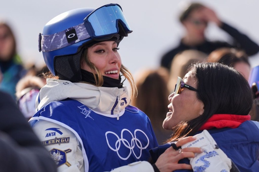 谷爱凌在比赛中鼓励来自澳大利亚的对手英德拉·布朗,这位16岁的女孩将谷爱凌视为她的偶像。